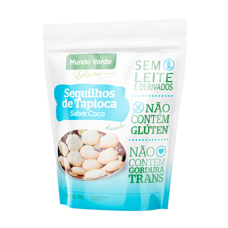 <p>O <strong>Sequilhos de Tapioca de Coco Mundo Verde Seleção 50g</strong>, é feito a base de polvilho doce, farinha de coco e leite de coco, adoçado com açúcar cristal. Opção de snack assado, saboroso livre de glúten, leite e derivados</p> Sugestão de consumo: <p>Pode ser consumido entre as refeições, opção ideal para lanche pode ser levado para qualquer lugar e consumido a qualquer hora! Uma pausa saudável para o seu dia.</p> Alergênicos: <p>Contém ovos.</p> Motivos para escolher o produto: <ul> <li> <p>Elaborados com tapioca</p> </li> <li> <p>Assado</p> </li> <li> <p>Sem leite</p> </li> <li> <p>Sem glúten</p> </li> <li> <p>Sem gordura trans</p> </li> </ul> Sobre a marca: <p>A <strong>Mundo Verde Seleção </strong>é uma linha de produtos para quem quer ter uma vida mais saudável e gostosa. A marca quer ajudar a colocar essas escolhas em prática. A paixão e conhecimento pelos alimentos, nutrientes, aromas e sabores permitem a seleção das melhores opções saudáveis para qualquer ocasião. Conheça a linha completa Mundo Verde Seleção, com inúmeros produtos saudáveis e gostosos para facilitar seu dia a dia.</p>