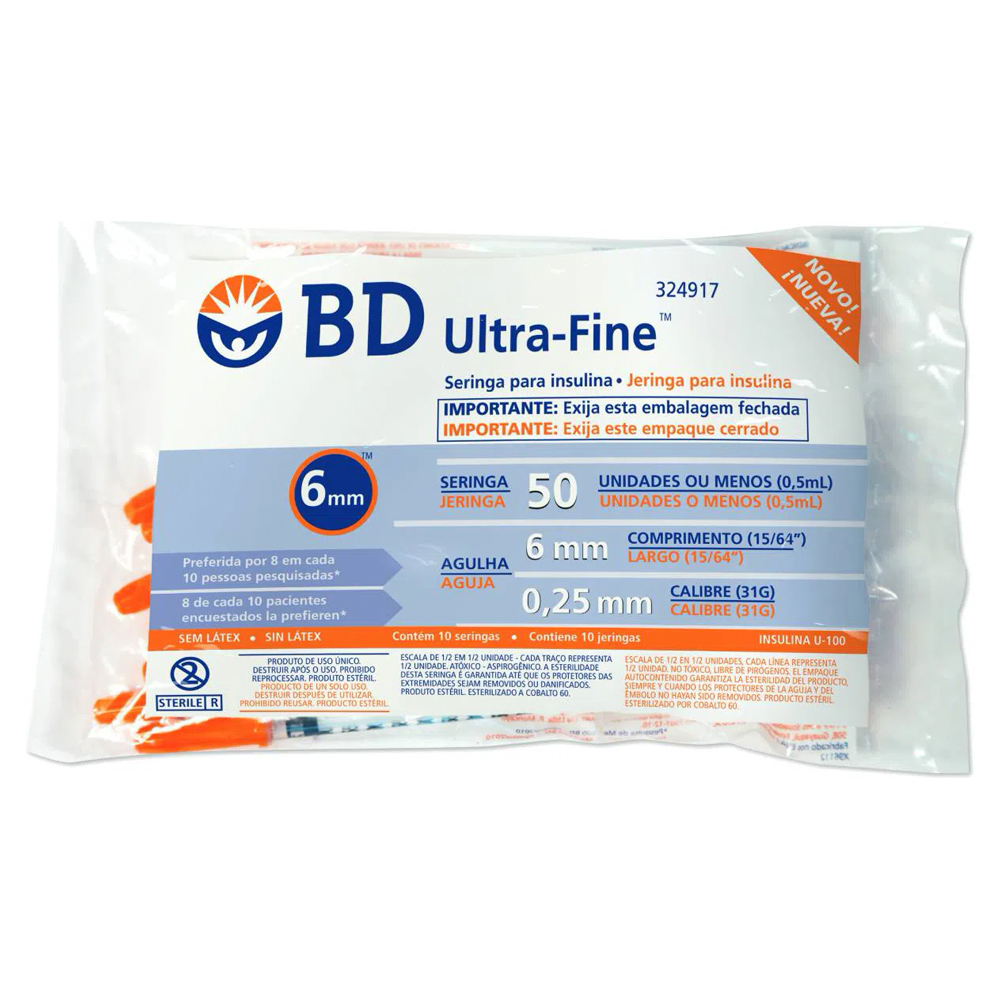 SERINGA INSUL BD 6MM 50UI C10