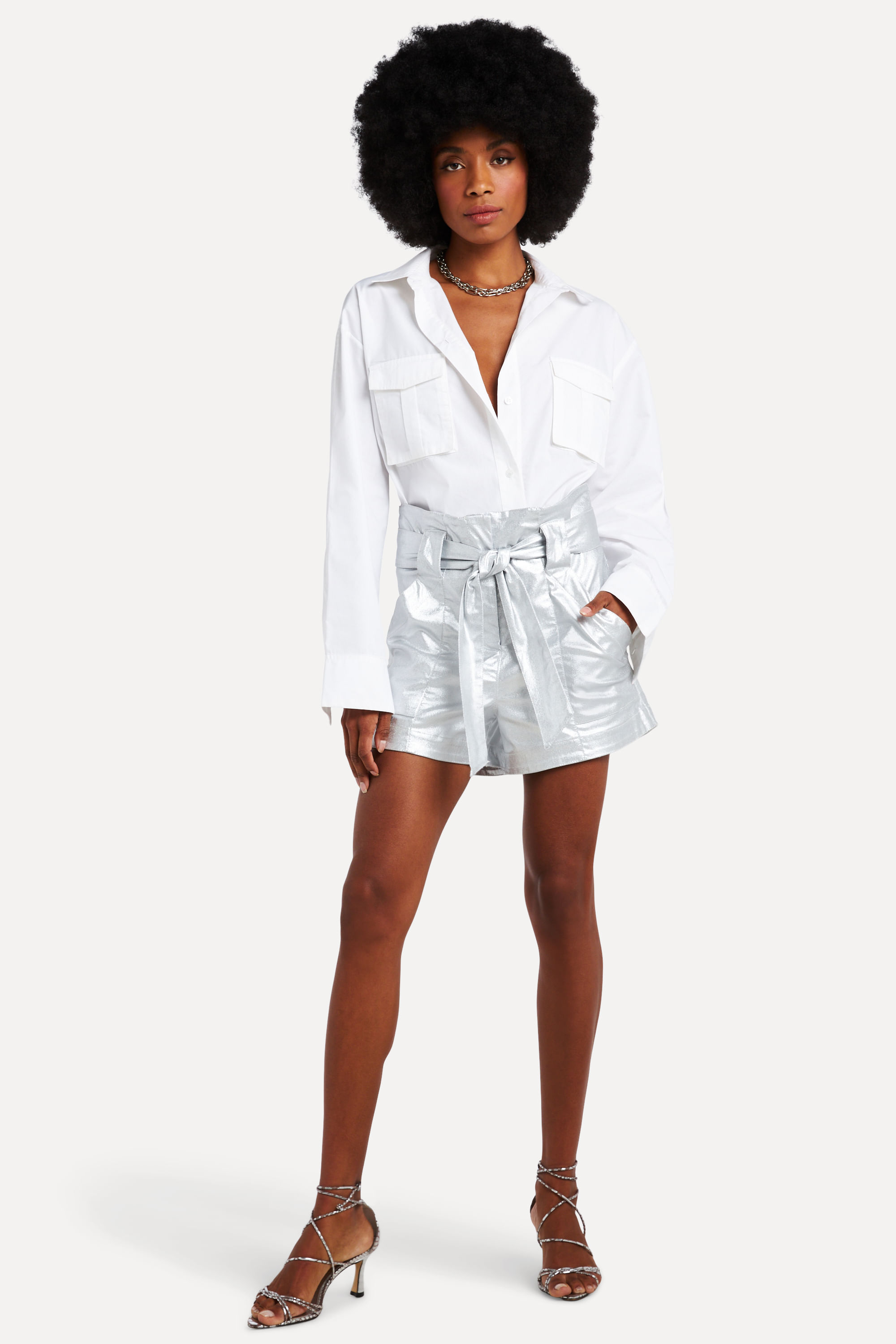 Comfy and glam! O short metalic high possui modelagem curta, solta e <b> cintura alta </b>. Com <b>elasticidade, resistência</b> e toque macio é perfeito para compor looks urbanos. Combine com nossas camisetas de malha, tops de tecido ou sarja.