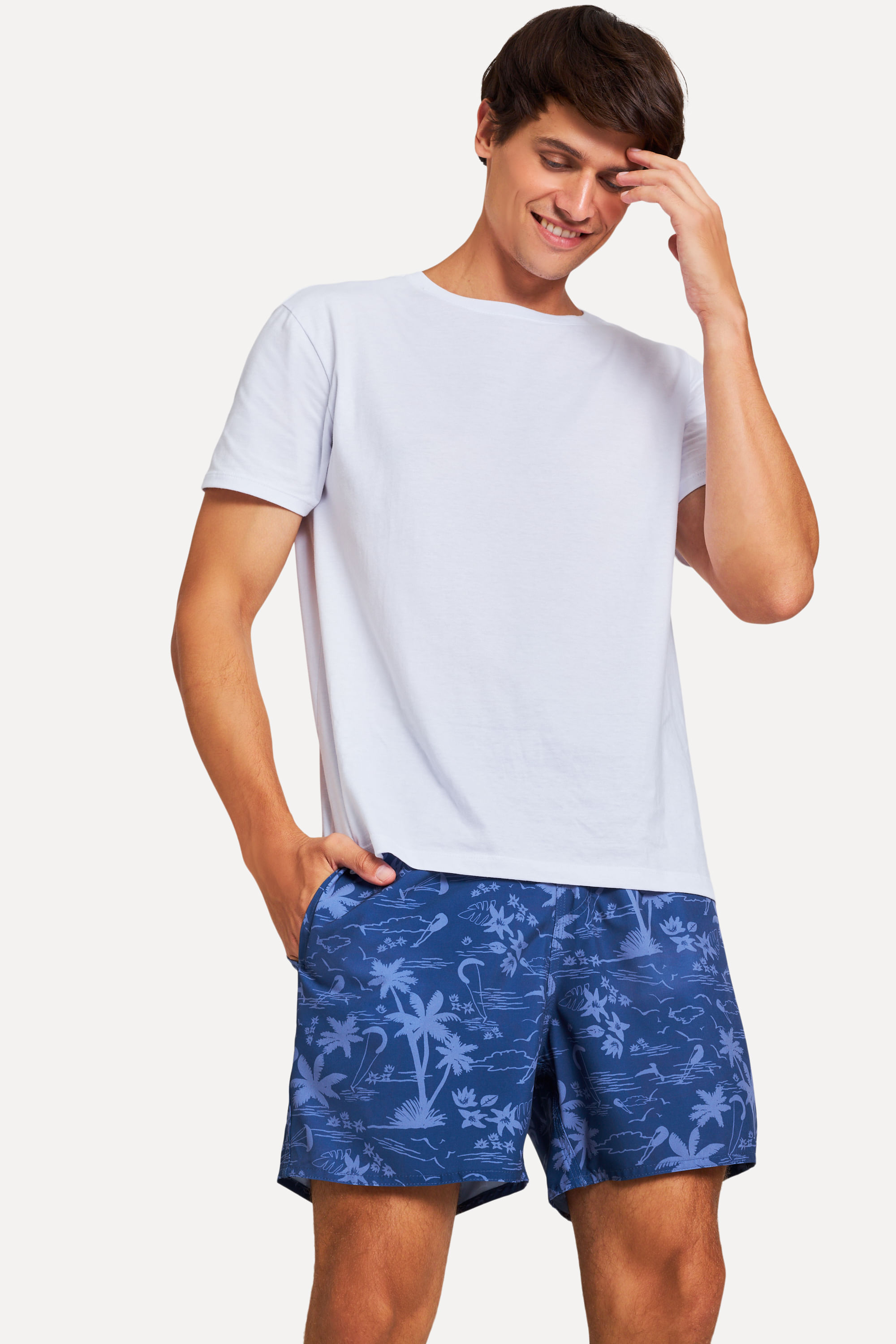 Short feito em material de alta qualidade, proporcionando muito conforto. Possui cós em elástico com ajuste por cadarços, bolsos laterais e bolso traseiro com ilhós, que libera a água durante o mergulho. Combine com camisetas ou regatas e chinelos. Comprando esta peça, você viabiliza cinco pratos de comida através do nosso Programa 1P5P. Short produzido eticamente no Brasil.