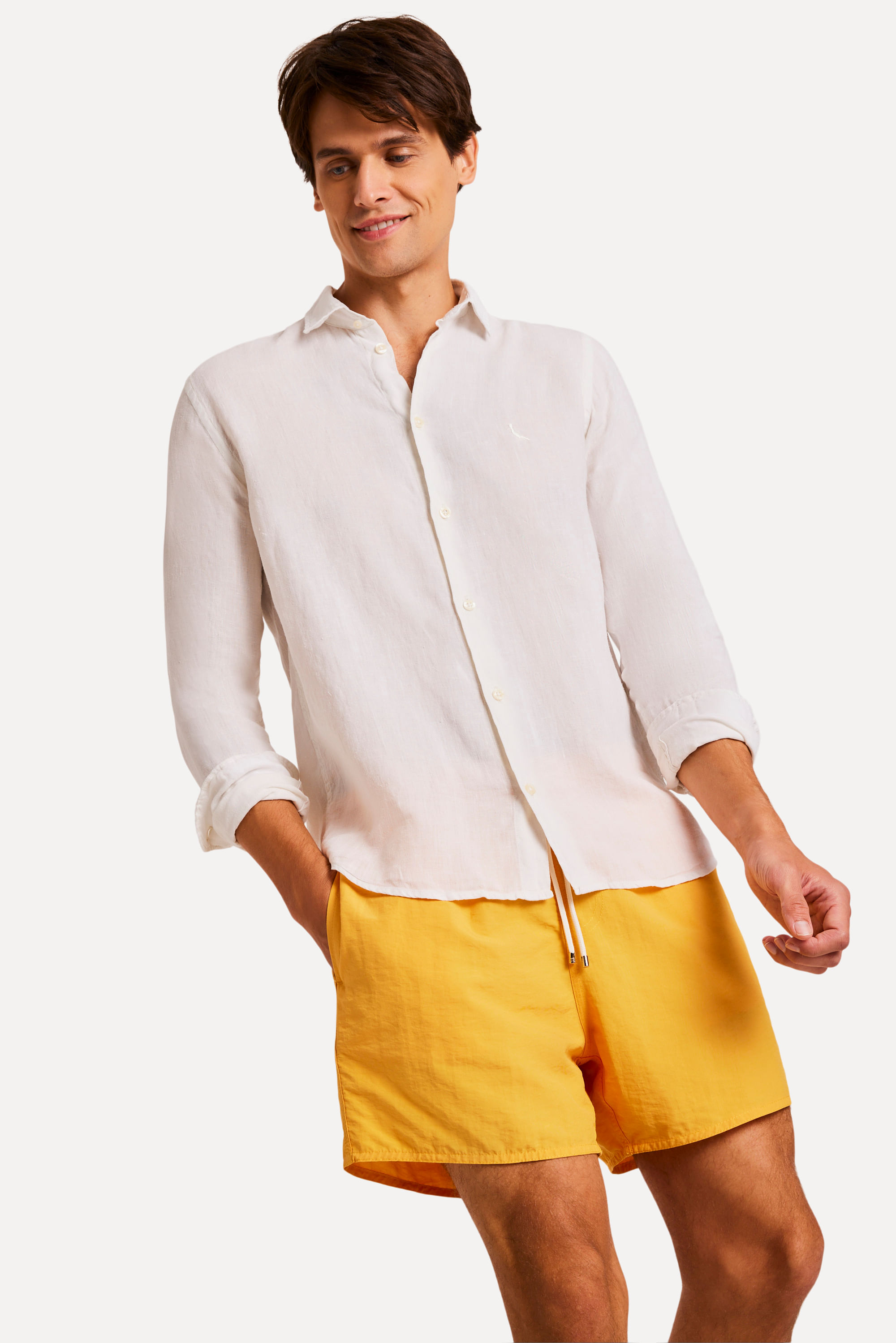 O Short Praia Liso já é queridinho aqui na Reserva. Feito com tecido leve e resistente, ele é perfeito para aproveitar os dias de sol na praia, piscina, cachoeira ou até no barzinho a tarde! Sua modelagem se adapta perfeitamente ao corpo, garantindo liberdade de movimento. Combine com uma camiseta estampada e um par de chinelos para um look descontraído e cheio de estilo. O modelo tem 1,84 de altura, 99 de tórax e veste 42. Comprando esta peça, você viabiliza cinco pratos de comida através do nosso Programa 1P5P. Short produzido eticamente no Brasil.