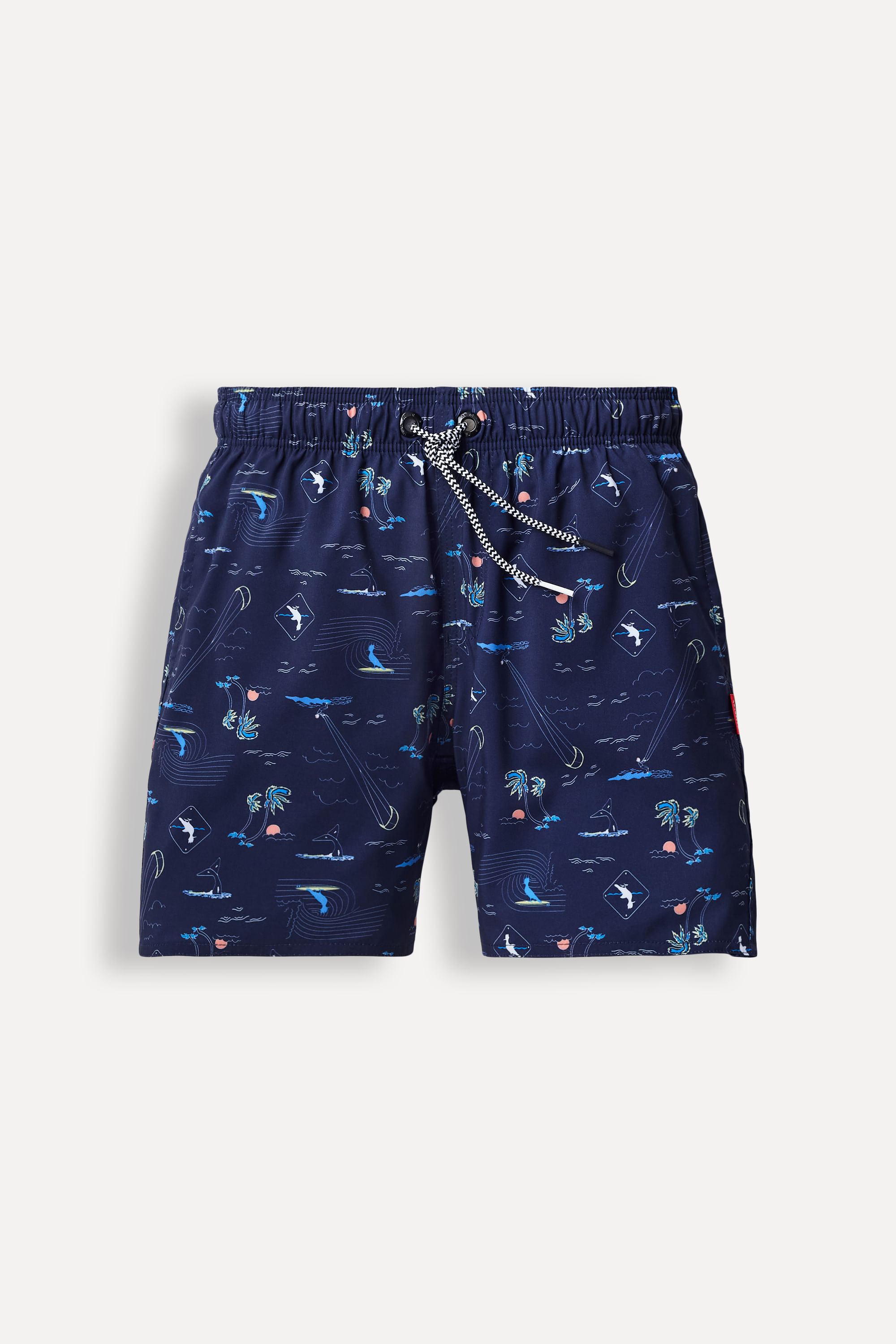 O Short Praia Mini Estampa Praia da Barra deixa o Mini pronto pro tchibum! Feita em tecido de alta qualidade que seca rápido, esse short possui cós de elástico e ajuste por cadarço, se adaptando perfeitamente ao corpo e garantindo muito conforto. Combine com camisetas, camisas ou regatas, tênis ou chinelos. O modelo tem 1,35 de altura, e veste 8 anos. Comprando esta peça, você viabiliza cinco pratos de comida através do nosso Programa 1P5P. Short produzido eticamente no Brasil.