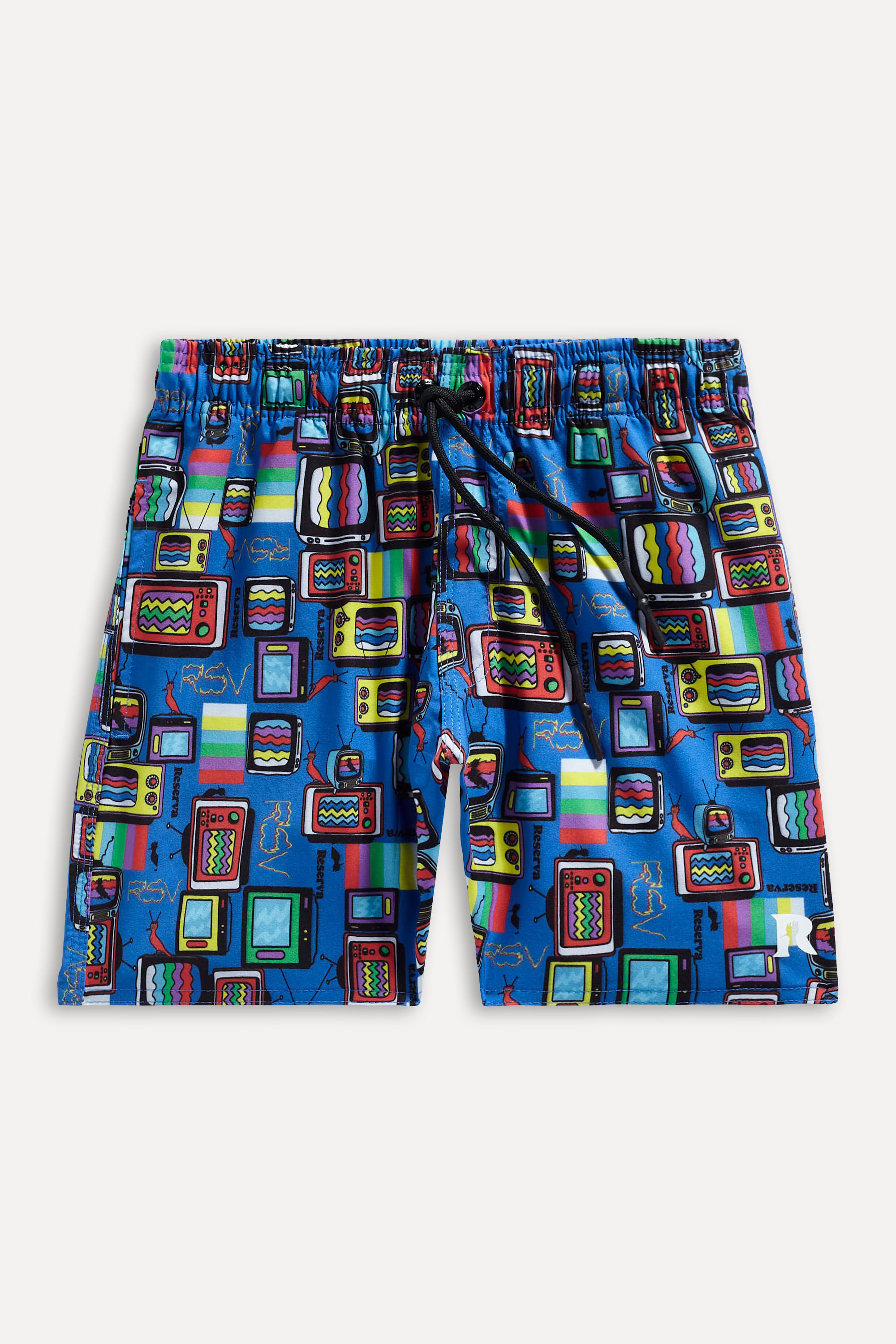 Short da linha infantil Reserva Mini. O modelo possui elástico no cós, cadarço que ajusta na cintura e bolso nas costas com detalhe. A estampa super divertida é perfeita para os dias na praia. Vai bem também com camisetas e tênis para as maiores brincadeiras! Produzido eticamente no Brasil. Comprando esta peça, você complementa cinco pratos de comida através do nosso programa 1P=5P.