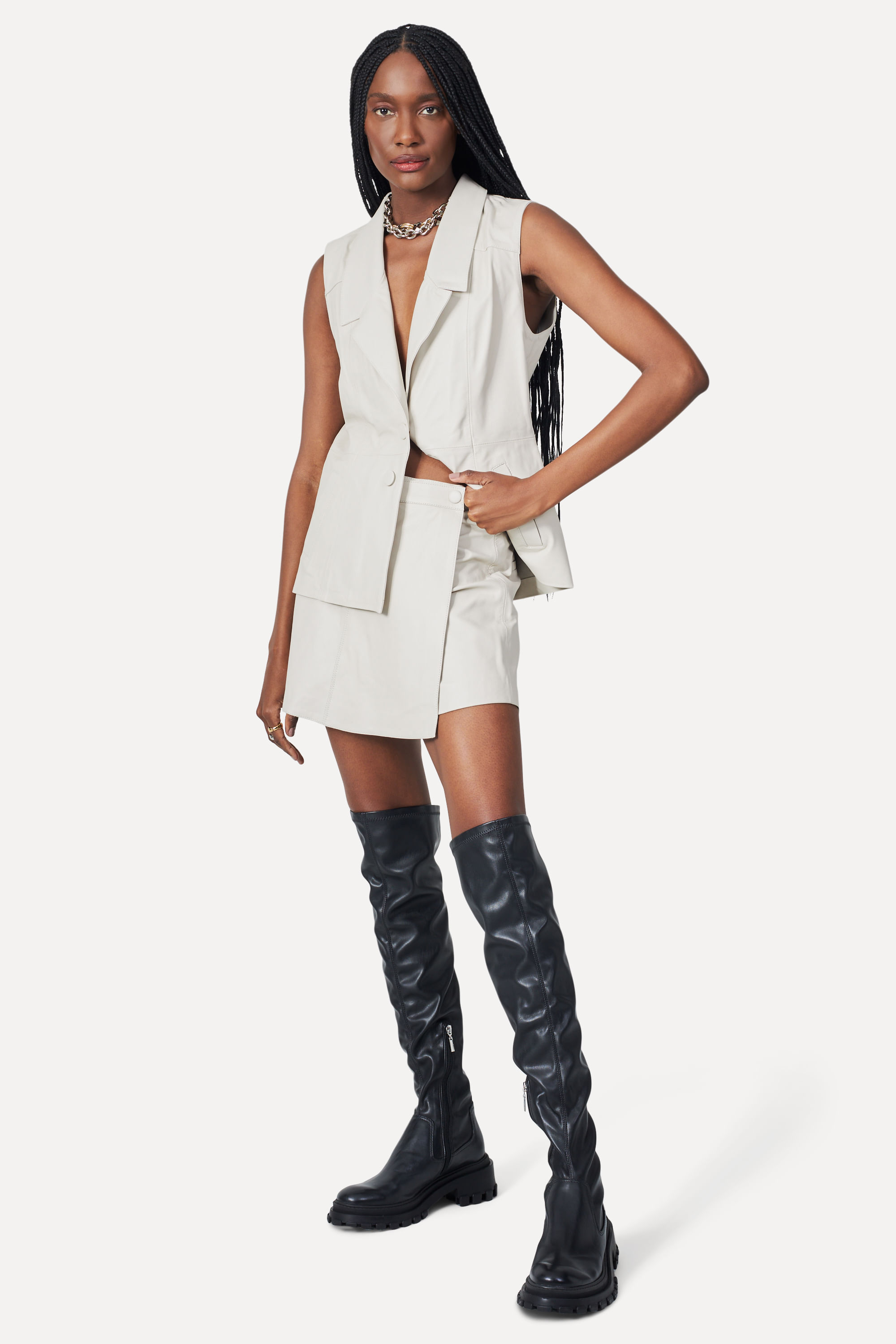 Descubra toda a elegância do Short Saia Alfaiataria para seus looks nos dias quentes. Em cor de areia, esse short saia pode também ser usado apenas como short, retirando a saia por meio de botões de pressão na cintura. Super versátil, são duas peças em uma! Combine com t-shirts, camisas ou camisetas, sandálias ou tênis e arrase! Comprando esta peça, você viabiliza cinco pratos de comida através do nosso Programa 1P5P. Short produzido eticamente no Brasil.