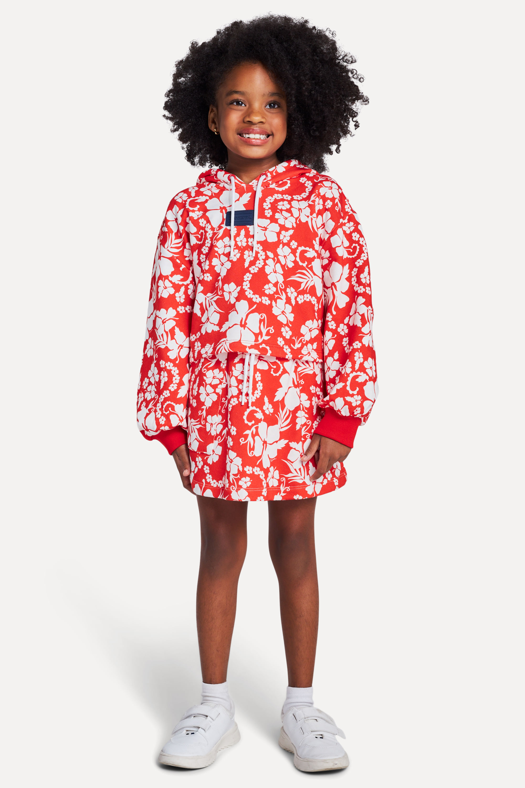 Short saia infantil da Reserva Mini para meninas. Modelo em moletom com estampa de hibisco, a cara do verao! Cos de moletom com elastico embutido para o ajuste. Assinatura com patch emborrachado, exclusivo da Reserva