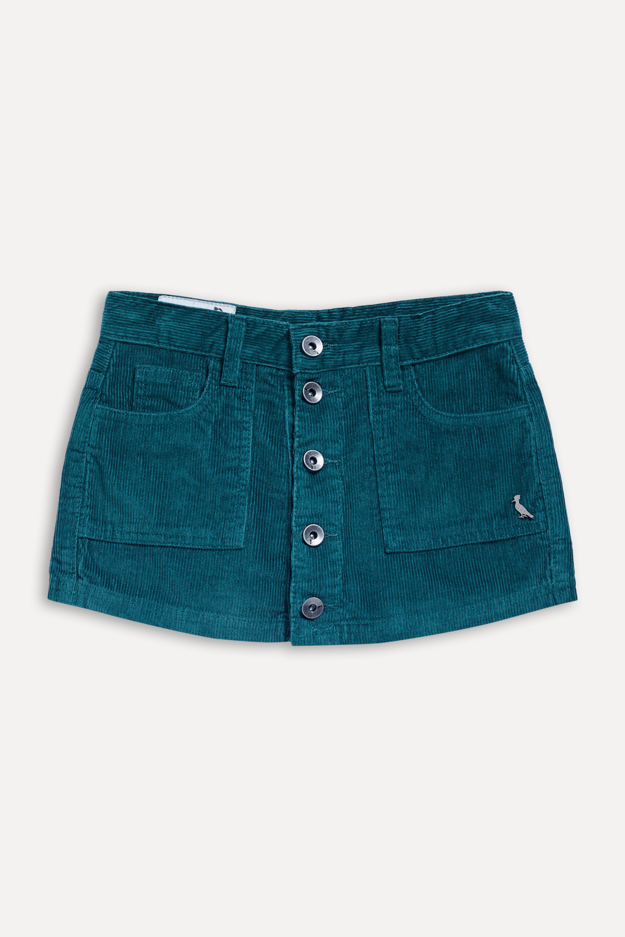 Short saia da Coleção da linha de meninas da Reserva Min. A peça é confeccionada em veludo cotelê. A saia de cima possui bolsos aplicados na frente e botões com pate para abrir no centro frente. O short debaixo tem bolsos 5 pockets nas costas. A peça possui regulagem interna com elástico e botões. Produzido eticamente no Brasil. Comprando esta peça, você complementa cinco pratos de comida através do nosso programa 1P=5P.