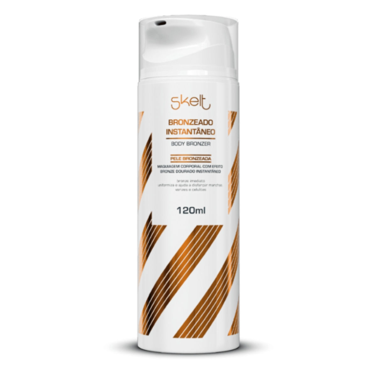 O Bronzeado Instantâneo é uma maquiagem corporal que promove um bronze natural imediato.<br /> <br /> Em apenas alguns segundos você garante um lindo bronzeado, sem manchas. Essa é a melhor forma de adquirir um bronzeado com efeito natural para o dia a dia, disfarçando imperfeições e dando um aspecto mais tonificado para o seu corpo.<br /> <br /> Com ele você vai ficar da cor do verão o ano inteiro. Esse produto tem duração de 12 a 24 horas.<br /> <br /> Porque o Bronzeado Instantâneo é pra você:<br /> <br /> Duração de 12 a 24 horas<br /> Bronze natural imediato<br /> Ajuda a disfarçar imperfeições<br /> Fácil aplicação<br /> <br /> <br /> <br /> <br /> MODO DE USO<br /> Aplique uma quantidade generosa do produto na mão ou na luva e espalhe em movimentos circulares até obter uma cor uniforme.<br /> Espere o produto secar para se vestir e arrase no bronze!<br /> <br /> O produto pode ser passado com as mãos ou com a Luva Aplicadora Skelt.<br /> <br /> <br /> <br /> <br /> <br /> COMPOSIÇÃO<br /> Aqua, Sorbitol, Soybean Glycerides, Butyrospermum Parkii Unsaponifiables, Stearic Acid, Mica (CI 77019), CI 77491, CI 77891, Glyceryl Stearate, Paraffinum Liquidum, Cyclomethicone, Caprylic/Capric Triglyderide, Magnesium Aluminum Silicate, Phenoxyethanol, Methylparaben, Ethylparaben, Propylparaben, Butylparaben, Isobutylparaben, CI 77499, Parfum (Benzyl Salicylate, Butylphenyl Methylpropional, Citronellol, Coumarin, Hexyl Cinnamal, Limonene, Linalool), CI77492, Cetyl Alcohol, Xanthan Gum, Triethanolamine.<br />