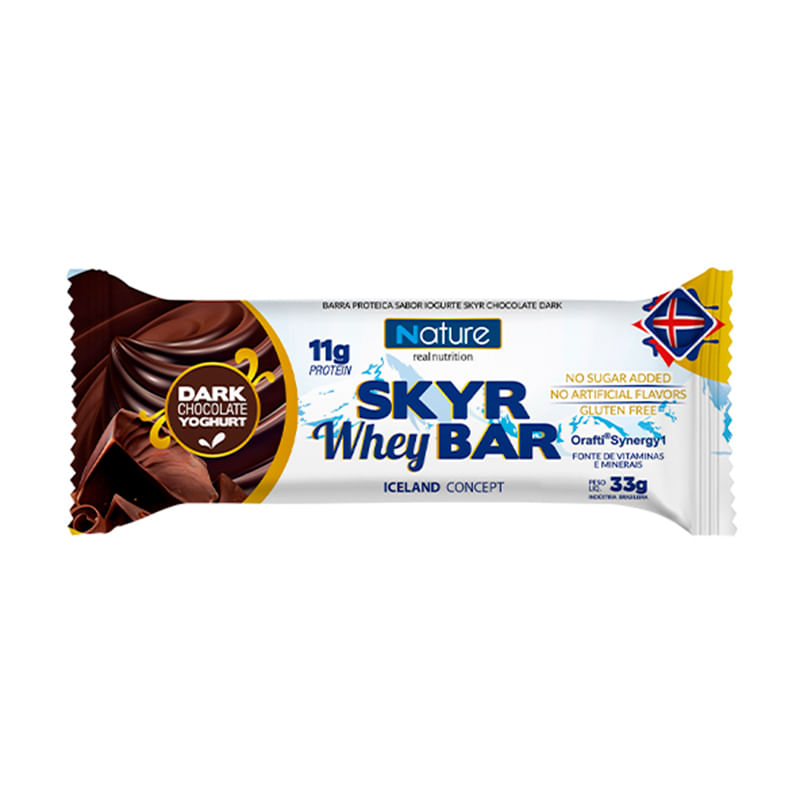 Informações técnicas do produto:<br> A Barrinha proteica Skyr whey bar dark, da Nutrata, é a opção perfeita para matar aquela vontade de comer doce de uma forma mais saudável. Cada porção contém 11g de proteína. <br> A barrinha é livre de conservantes, corantes e aromatizantes artificiais. Além disso as porções individuais são ideais para transportar e ter sempre à mão onde quer que esteja!<br> Recomendação de uso: <br> É uma excelente e prática opção de lanche para levar na bolsa, na mochila, no carro, na academia, no trabalho. Pode ser consumida a qualquer horário do dia, também uma ótima alternativa para aqueles momentos que bate uma vontade de comer um doce.<br> Por que escolher esse produto?<br> Produto prático<br> Produto 100% natural<br> Livre de corantes artificiais<br> Livre de conservantes<br> Sem glúten<br> Sem açúcar<br> Sobre a marca: <br> A Nutrata com sua experiência de mais de 20 anos gera confiança e credibilidade com a qualidade dos seus produtos. Seu objetivo é atingir todos os tipos de público que buscam uma qualidade de vida melhor ou que necessitam de produtos específicos e de alta performance.