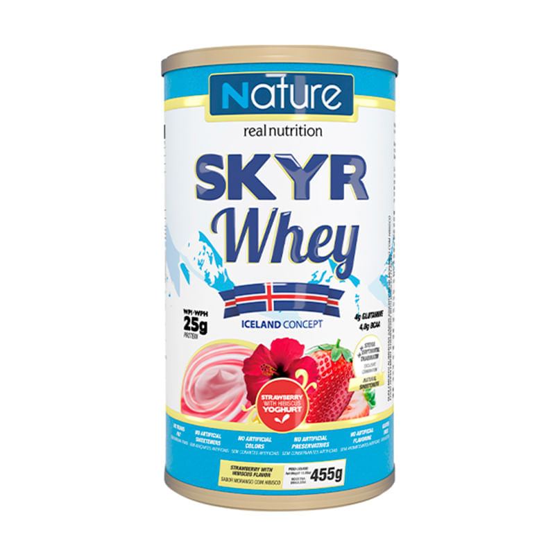<p>Informações técnicas do produto:<br>O Skyr whey morango e hibisco da Nutrata, um suplemento proteico à base de proteína isolada do soro do leite e proteína hidrolisada do soro do leite. <br>Cada porção fornece 25g de proteína combinado com o delicioso sabor do morango e hibisco oferece uma experiência deliciosa e nutritiva.<br>Sobre os ingredientes:<br>Proteína Hidrolisado e Isolado: Blend de proteínas puras e todos os aminoácidos de alto valor biológico em sua composição.<br>Recomendação de uso: <br>Dilua 30g (03 colheres dosadoras) em 200 ml de água.<br>Consuma 1 a 2 porções ao dia ou conforme orientação de nutricionista ou médico.<br>Por que escolher esse produto?<br>25g de proteína na porção<br>Produto 100% natural<br>Livre de corantes artificiais<br>Livre de conservantes<br>Livre de gordura trans<br>Sem aromatizantes artificiais<br>Sem adoçantes artificiais<br>Sem glúten<br>Sem açúcar<br>Sobre a marca: <br>A Nutrata com sua experiência de mais de 20 anos gera confiança e credibilidade com a qualidade dos seus produtos. Seu objetivo é atingir todos os tipos de público que buscam uma qualidade de vida melhor ou que necessitam de produtos específicos e de alta performance.</p>