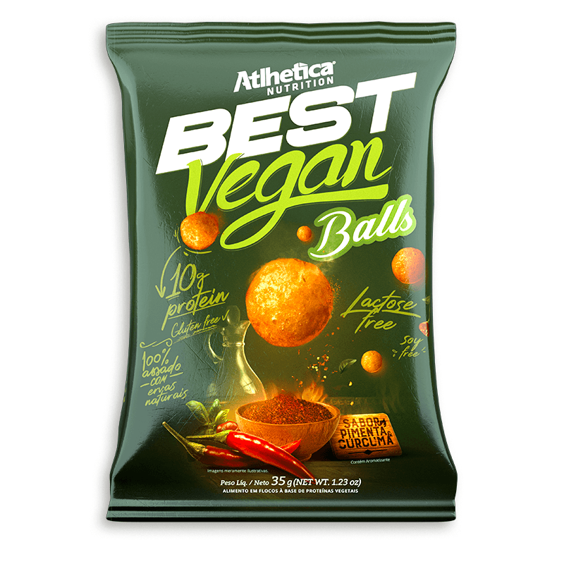 <p>Chegou <strong>Snack Best Vegan Balls Pimenta e Curcuma Atlhetica</strong>, um maravilhoso snack 100% assado. Super crocante e saboroso, livre de lactose, gordura trans, soja e ainda contém 10 gramas de proteína. Tudo para que você não deixe sua dieta de lado.</p> <p>O Best Vegan Balls é fabricado a partir da proteína isolada da ervilha, farinha de arroz, temperos naturais e fibras solúveis.</p> Sobre os ingredientes: <p>Farinha de ervilha, proteína isolada de ervilha, farinha de arroz, mix de temperos (cúrcuma, páprica, pimenta caiena), óleo de girassol, sal light (nutrasal), aromatizantes e levedura em pó. Não contém Glúten. Não contém lactose.</p> Motivos para escolher o produto: <ul> <li> <p>Sem glúten</p> </li> <li> <p>Sem lactose</p> </li> <li> <p>Proteína Vegetal Isolada</p> </li> <li> <p>Farinha de arroz</p> </li> <li> <p>Levedura Nutricional</p> </li> <li> <p>Temperos Naturais</p> </li> <li> <p>50% menos sódio</p> </li> </ul> Sobre a marca: <p>A <strong>Atlhetica</strong>, é uma empresa no qual os produtos são desenvolvidos pela ADS Laboratório Nutricional, que produz suplementos alimentares inovadores com alta qualidade e tecnologia avançada, é considerada a maior indústria de suplementos alimentares do Brasil. Os são fabricados seguindo as normas estabelecidas pela ANVISA (Agência Nacional de Vigilância Sanitária) e pelas Boas Práticas de Fabricação (BPF), proporcionando a qualidade, bem-estar e a eficácia que os consumidores tanto desejam.</p>