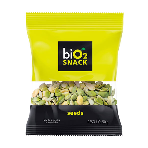 Informações técnicas sobre o produto:<br>_x000D_ O Snack seeds, da biO2, 50g, é uma opção de snack, com 12g de proteína por unidade.<br>_x000D_ <br>_x000D_ Seus ingredientes são livres de corantes, conservantes, aromatizantes e de alimentos de origem animal, sendo considerado um produto vegano.<br>_x000D_ <br>_x000D_ Sobre os ingredientes:<br>_x000D_ Sementes de abóbora: apresentam elevado teor proteico e de “gorduras boas” como o ácidos graxos poli-insaturados, possuem fibras que auxiliam no melhor funcionamento intestinal e no aumento da saciedade. É rica em minerais (zinco, magnésio, ferro, fósforo).<br>_x000D_ Semente de girassol: é fonte de minerais (zinco, magnésio, selênio, cobre), vitamina E, ácidos graxos poli-insaturados.<br>_x000D_ Amendoim: fonte de ácidos graxos monoinsaturados, que auxiliam na regulação do colesterol; rico também em ácidos graxos poli-insaturados; fonte de energia, vitamina E e de minerais.<br>_x000D_ Recomendações de consumo:<br>_x000D_ Consumir como lanche intermediário entre as refeições principais.<br>_x000D_ <br>_x000D_ Alergênicos:<br>_x000D_ Contém amendoim. Pode conter amêndoa, avelã, castanha-do-brasil, castanha-de-caju, macadâmia, pistache, soja e pecã.<br>_x000D_ <br>_x000D_ Por que escolher esse produto?<br>_x000D_ · Vegano<br>_x000D_ <br>_x000D_ · Sem leite<br>_x000D_ <br>_x000D_ · Sem glúten<br>_x000D_ <br>_x000D_ · Sem lactose<br>_x000D_ <br>_x000D_ · Sem conservantes<br>_x000D_ <br>_x000D_ · Sem corantes<br>_x000D_ <br>_x000D_ · Sem aromas artificiais<br>_x000D_ <br>_x000D_ Sobre a marca:<br>_x000D_ A biO2 acredita no poder da diversidade dos alimentos brasileiros, na importância do alimento o mais natural possível, livre de conservantes, corantes e adoçantes artificiais. Apresentando diversas linhas de produtos nutritivos e saborosos, prontos para quem procura ter uma vida mais saudável