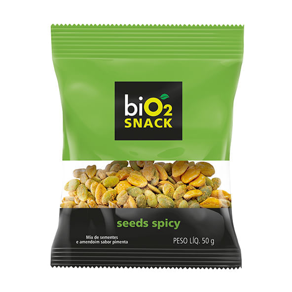 <br>_x000D_ O Snack seeds spicy, da biO2, 50g, é uma opção de snack, com 11g de proteína por unidade.<br>_x000D_ <br>_x000D_ Seus ingredientes são livres de corantes, conservantes, aromatizantes e de alimentos de origem animal, sendo considerado um produto vegano.<br>_x000D_ <br>_x000D_ Sobre os ingredientes:<br>_x000D_ Sementes de abóbora: apresentam elevado teor proteico e de “gorduras boas” como o ácidos graxos poli-insaturados, possuem fibras que auxiliam no melhor funcionamento intestinal e no aumento da saciedade. É rica em minerais (zinco, magnésio, ferro, fósforo).<br>_x000D_ Semente de girassol: é fonte de minerais (zinco, magnésio, selênio, cobre), vitamina E, ácidos graxos poli-insaturados.<br>_x000D_ Amendoim: fonte de ácidos graxos monoinsaturados, que auxiliam na regulação do colesterol; rico também em ácidos graxos poli-insaturados, que ajudam a proteger o coração; fonte de energia, vitamina E e de minerais.<br>_x000D_ Pimenta caiena: possui a capsaicina, um dos principais compostos das pimentas ardidas, que auxilia no metabolismo energético.<br>_x000D_ Pimenta preta: rica em vitamina A, C e E, auxiliando no combate aos radicais livres.<br>_x000D_ Sal marinho: não passa por processamento como o sal comum de mesa, e por isso mantém todos os microminerais e nutrientes.<br>_x000D_ Recomendações de consumo:<br>_x000D_ <br>_x000D_ Consumir como lanche intermediário entre as refeições principais.<br>_x000D_ <br>_x000D_ Alergênicos:<br>_x000D_ <br>_x000D_ Contém amendoim. Pode conter amêndoa, avelã, castanha-do-brasil, castanha-de-caju, macadâmia, pistache, soja e pecã.<br>_x000D_ <br>_x000D_ Por que escolher esse produto?<br>_x000D_ <br>_x000D_ · Vegano<br>_x000D_ <br>_x000D_ · Sem leite<br>_x000D_ <br>_x000D_ · Sem glúten<br>_x000D_ <br>_x000D_ · Sem lactose<br>_x000D_ <br>_x000D_ · Sem conservantes<br>_x000D_ <br>_x000D_ · Sem corantes<br>_x000D_ <br>_x000D_ · Sem aromas artificiais<br>_x000D_ <br>_x000D_ Sobre a marca:<br>_x000D_ <br>_x000D_ A biO2 acredita no poder da diversidade dos alimentos brasileiros, na importância do alimento o mais natural possível, livre de conservantes, corantes e adoçantes artificiais. Apresentando diversas linhas de produtos nutritivos e saborosos, prontos para quem procura ter uma vida mais saudável.