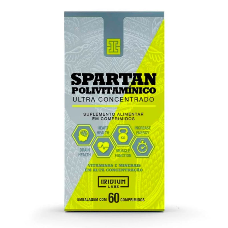 <p><strong> O Spartan Polivitamínico Ultra Concentrado, da Iridium Labs</strong>, é um suplemento alimentar formulado com 21 vitaminas e minerais essenciais em concentrações de nutrientes muito superiores.</p> Sobre os Ingredientes: <p><strong>Magnésio:</strong> auxilia no metabolismo energético (carboidratos, proteínas e gorduras), auxilia no funcionamento muscular e neuromuscular, além de atuar na formação de ossos e dentes.</p> <p><strong>Selênio, vitamina C e E</strong>: auxiliam no funcionamento do sistema imune. Apresentam ação antioxidante que auxilia na proteção dos danos causados pelos radicais livres. A vitamina C ainda atua na formação do colágeno.</p> <p><strong> Vitaminas do Complexo B</strong>: auxiliam no funcionamento do sistema imune e otimiza o metabolismo de proteínas, carboidratos e gorduras.</p> <p><strong> Vitamina D: </strong>auxilia no funcionamento do sistema imune.</p> <p><strong>Alérgicos</strong>: <strong>Pode conter derivados de soja.</strong></p> Recomendações de consumo: <p>Consuma 2 (dois) comprimidos por dia, preferencialmente pela manhã ou antes de dormir, ou conforme recomendação do médico ou nutricionista.</p> Por que escolher esse produto? <p>• 100% da IDR das vitaminas e minerais</p> <p>• Sem glúten</p> <p>• Sem açúcar</p> Sobre a marca: <p>A Iridium Labs, é uma marca que chegou no mercado brasileiro com a ideia de dar suporte tanto a um atleta profissional quanto a um amador, contribuindo para que os objetivos que esse público almeja sejam alcançados com sucesso. Isso tudo devido aos seus produtos que possuem fórmulas completas e eficientes.</p> O Spartan Polivitamínico Ultra Concentrado, da Iridium Labs, é um suplemento alimentar formulado com 21 vitaminas e minerais essenciais em concentrações de nutrientes muito superiores.<br> Sobre os Ingredientes:<br> • Magnésio: auxilia no metabolismo energético (carboidratos, proteínas e gorduras), auxilia no funcionamento muscular e neuromuscular, além de atuar na formação de ossos e dentes.<br> • Selênio, vitamina C e E: auxiliam no funcionamento do sistema imune. Apresentam ação antioxidante que auxilia na proteção dos danos causados pelos radicais livres. A vitamina C ainda atua na formação do colágeno.<br> • Vitaminas do Complexo B: auxiliam no funcionamento do sistema imune e otimiza o metabolismo de proteínas, carboidratos e gorduras.<br> • Vitamina D: auxilia no funcionamento do sistema imune.<br> Alérgicos:<br> Pode conter derivados de soja.<br> Recomendações de consumo:<br> Consuma 2 (dois) comprimidos por dia, preferencialmente pela manhã ou antes de dormir, ou conforme recomendação do médico ou nutricionista.<br> Por que escolher esse produto?<br> • 100% da IDR das vitaminas e minerais <br> • Sem glúten<br> • Sem açúcar<br> Sobre a marca:<br> A Iridium Labs, é uma marca que chegou no mercado brasileiro com a ideia de dar suporte tanto a um atleta profissional quanto a um amador, contribuindo para que os objetivos que esse público almeja sejam alcançados com sucesso. Isso tudo devido aos seus produtos que possuem fórmulas completas e eficientes.<br>