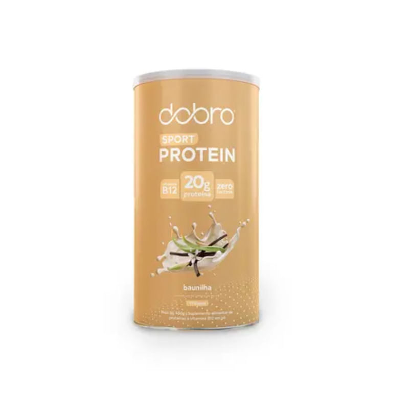 <p>O Sport Protein sabor baunilha da Dobro é elaborado com um blend de proteínas vegetais, que garantem um aminograma completo, cada dose fornece 20g de proteínas em uma fórmula clean label, saborosa e com textura cremosa. </p> <h2><strong>Sugestão de consumo:</strong></h2> <p>Diluir 2 scoops (30g) em 200ml de água ou conforme orientação do médico ou nutricionista.</p> <h2><strong>Motivos para escolher o produto:</strong></h2> <ul> <li> <p>Isenta de glúten e lactose;</p> </li> <li> <p>Sem adição de açúcares;</p> </li> <li> <p>Adoçado naturalmente com stévia;</p> </li> <li> <p>Rende 15 doses;</p> </li> <li> <p>20g de proteína por dose;</p> </li> <li> <p>Feita com proteínas da ervilha, do arroz e da lentilha;</p> </li> <li> <p>Plant-based;</p> </li> <li> <p>Contém a dose diária de vitamina B12;</p> </li> </ul> <h2><strong>A Marca</strong></h2> <p>A Dobro foi fundada em 2018 através de um projeto de TCC da faculdade, a marca tem o propósito de nutrir relacionamentos com o mundo, buscando melhorias pessoais, sociais e ambientais. Os produtos da Dobro são desenvolvidos cuidadosamente por profissionais da saúde, atletas e clientes, combinando os benefícios de ingredientes naturais com sabor e tecnologia.</p> <p> </p>