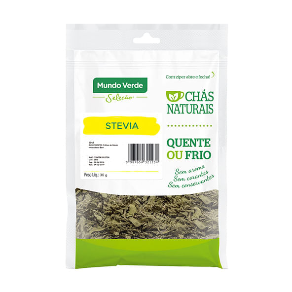 Informações técnicas:<br> As Folhas de Stevia Mundo Verde Seleção são feitas a partir das folhas desidratadas da planta Stevia Reubaudiana e de leve sabor adocicado. É 100% natural e pode ser consumido quente ou frio.<br> <br> Recomendações para consumo:<br> Despeje uma xícara de água fervente sobre uma colher de sobremesa das folhas e em seguida abafe por 10 minutos. Pode ser consumido quente ou frio.<br> <br> Motivos para escolher esse produto?<br> Sem adição de aroma e corante artificial<br> 100% Natural<br> Não contém glúten<br> Sem adição de açúcar<br> Isento de lactose<br> Informações sobre a marca:<br> A Mundo Verde Seleção é uma linha de produtos para quem quer ter uma vida mais saudável e gostosa. A marca quer ajudar a colocar essas escolhas em prática. A paixão e conhecimento pelos alimentos, nutrientes, aromas e sabores permitem a seleção das melhores opções saudáveis para qualquer ocasião. Conheça a linha completa Mundo Verde Seleção, com inúmeros produtos saudáveis e gostosos para facilitar seu dia a dia.