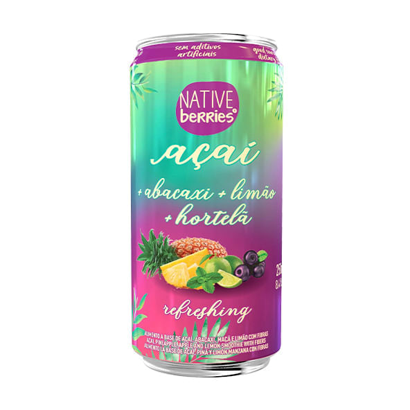 O Suco de Açaí Refreshing, da Native Berries, é formulado com o blend da superfruta açaí, com abacaxi, hortelã e limão, tornando o suco nutritivo e com propriedades que colaboram para a saúde. É uma opção super refrescante e sem adição de açúcar para você!