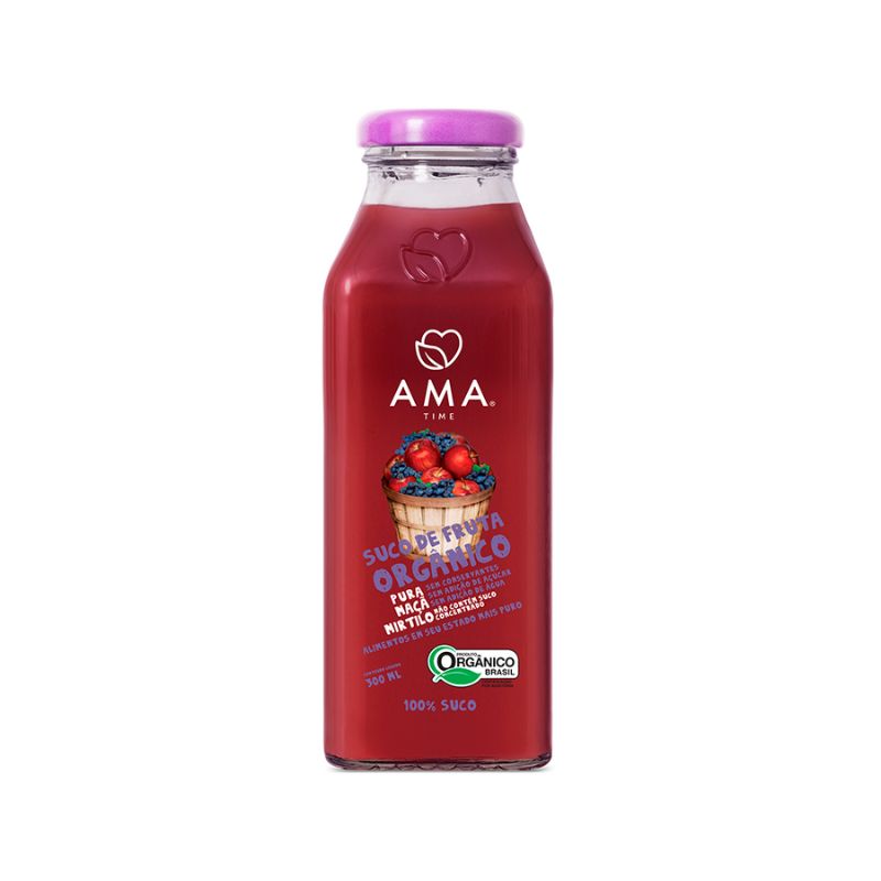 <h2 style="text-align: justify;"><strong>Suco de fruta Orgânico Maçã e Mirtilo 300ml Ama Time</strong></h2> <p style="text-align: justify;"><span style="font-weight: 400;">O </span><strong>Suco</strong><span style="font-weight: 400;"> </span><strong>de frutas de Maçã e Mirtilo Ama Time, </strong><span style="font-weight: 400;">é elaborado com apenas com dois ingredientes, somente maçãs e peras orgânicas, livres de agrotóxicos e pesticidas. Delicioso, saudável e refrescante. </span></p> <h2 style="text-align: justify;"><strong>Sugestão de consumo:</strong></h2> <p style="text-align: justify;"><span style="font-weight: 400;">Recomendado para cafés e lanches intermediários, uma forma prática e saudável para o consumo de frutas e líquidos fora de casa. Suco com alta concentração de compostos bioativos e antioxidantes para ser consumido ao longo do dia ou conforme orientação do médico ou nutricionista. </span></p> <h2 style="text-align: justify;"><strong>Motivos para escolher o produto:</strong></h2> <ul style="text-align: justify;"> <li style="font-weight: 400;" aria-level="1"><span style="font-weight: 400;">100% fruta;</span></li> <li style="font-weight: 400;" aria-level="1"><span style="font-weight: 400;">Orgânico – livre de pesticidas e agrotóxicos;</span></li> <li style="font-weight: 400;" aria-level="1"><span style="font-weight: 400;">Contém fibras e antioxidantes;</span></li> <li style="font-weight: 400;" aria-level="1"><span style="font-weight: 400;">Elaborado com apenas 2 ingredientes;</span></li> <li style="font-weight: 400;" aria-level="1"><span style="font-weight: 400;">Sem conservantes, corantes e aromatizantes</span></li> <li style="font-weight: 400;" aria-level="1"><span style="font-weight: 400;">Sem glúten, adição de água e sem adição de açúcar.</span></li> </ul> <p style="text-align: justify;"> </p> <h2 style="text-align: justify;"><strong>A Marca</strong></h2> <p style="text-align: justify;"><strong>AMA Time</strong><span style="font-weight: 400;"> é uma empresa chilena que produz e comercializa deliciosos sucos e purês feitos de frutas 100% orgânicas, sem concentrados e sem adição de água ou açúcar. Ao não concentrar os ingredientes, preserva-se o aroma, a cor, textura e também grande parte dos nutrientes da fruta. Agregando valor às frutas e hortaliças orgânicas, produzem alimentos em seu estado mais puro. Possuem a certificação Ecocert para exportação com o selo orgânico para os Estados Unidos, União Europeia, China, Coreia do Sul, Japão e Brasil.</span></p>