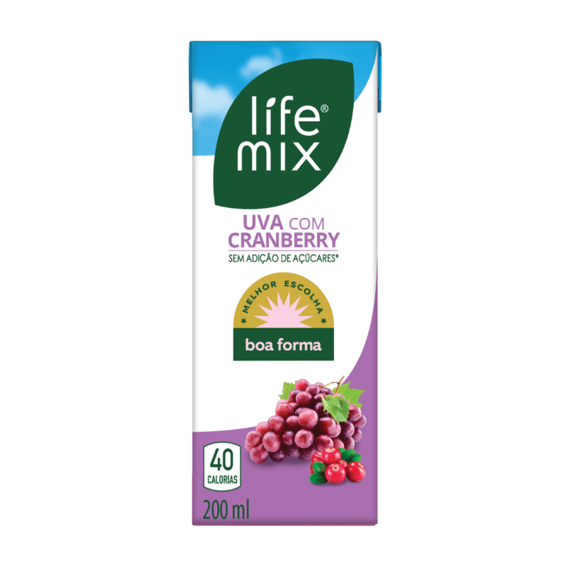 <p>O <strong>Suco de uva com cranberry Life Mix</strong> possui baixa caloria e é produzido sem açúcar, conservantes e livre de ingredientes artificiais. Sua fórmula natural e funcional é fonte de fibra e enriquecida com vitaminas e minerais. Nesta embalagem de 200 ml é prático para levar para o trabalho, escola ou passeios.</p> <h2><strong>Sugestão de consumo:</strong></h2> <p>Ideal para acompanhar suas refeições principais ou lanches.</p> <h2><strong>Motivos para escolher o produto:</strong></h2> <ul> <li> <p>Possui apenas 40 calorias por copo;</p> </li> <li> <p>Prático para transporte;</p> </li> <li> <p>Livre de conservantes e ingredientes artificiais;</p> </li> <li> <p>Fonte de fibra, vitaminas e minerais;</p> </li> <li> <p>Vegano;</p> </li> <li> <p>Baixo teor de sódio;</p> </li> <li> <p>Sem adição de açúcares;</p> </li> <li> <p>Adoçado com stévia, adoçante natural.</p> </li> </ul> <h2><strong>A Marca</strong></h2> <p>A Life Mix oferece uma linha completa de bebidas saudáveis e funcionais, formuladas para atender às necessidades do seu dia a dia. Enriquecidas e fortificadas com vitaminas e minerais, as opções são práticas e pensadas para complementar sua alimentação, promovendo bem-estar e equilíbrio em cada escolha.</p> <p> </p>