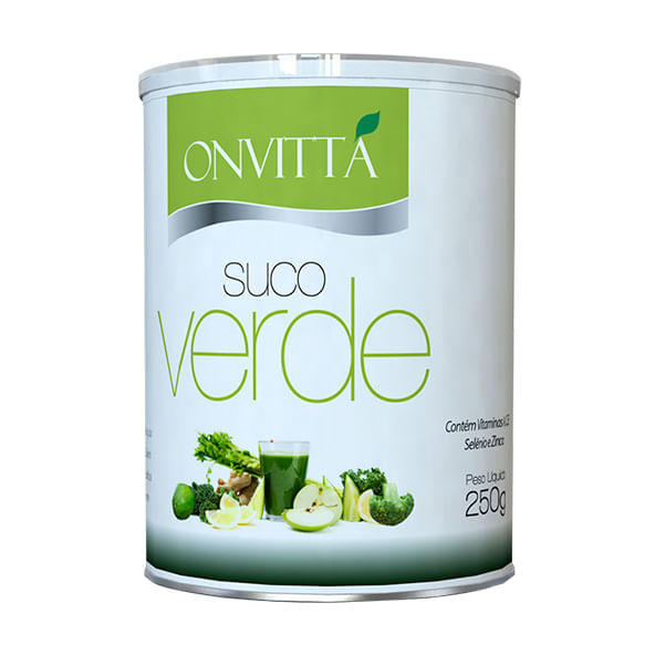 Informações técnicas do produto:<br> O Suco Verde, da Onvittá, 300g, é uma bebida fonte de vitaminas, sais minerais e vegetais, contendo couve, espinafre, salsa, gengibre, maçã e clorofila (extraída naturalmente da couve e do espinafre).<br> <br> Cada porção do produto fornece 10,5g de fibras, além de 100% da recomendação diária das vitaminas b5, b7, b9 e b12.<br> <br> Informações sobre alergênicos:<br> Pode conter derivados do leite de vaca, soja, cevada, ovos e látex natural.<br> <br> Recomendações de consumo:<br> Dissolver 2 medidas dosadora (15g) do produto em 200 ml de água, mexer até diluir ou então bater no liquidificador.<br> <br> Por que escolher esse produto?<br> Rico em fibras<br> Não contém conservantes<br> Sem lactose<br> Não contém glúten<br> Sobre a marca:<br> A OnVittá, surgiu para proporcionar bem-estar, saúde e beleza a todas as pessoas que desejam a maior qualidade de vida possível. A marca fornece produtos especialmente desenvolvidos por médicos e nutricionistas, disponibilizando uma linha diferenciada de colágenos hidrolisados, chás e sucos verdes.