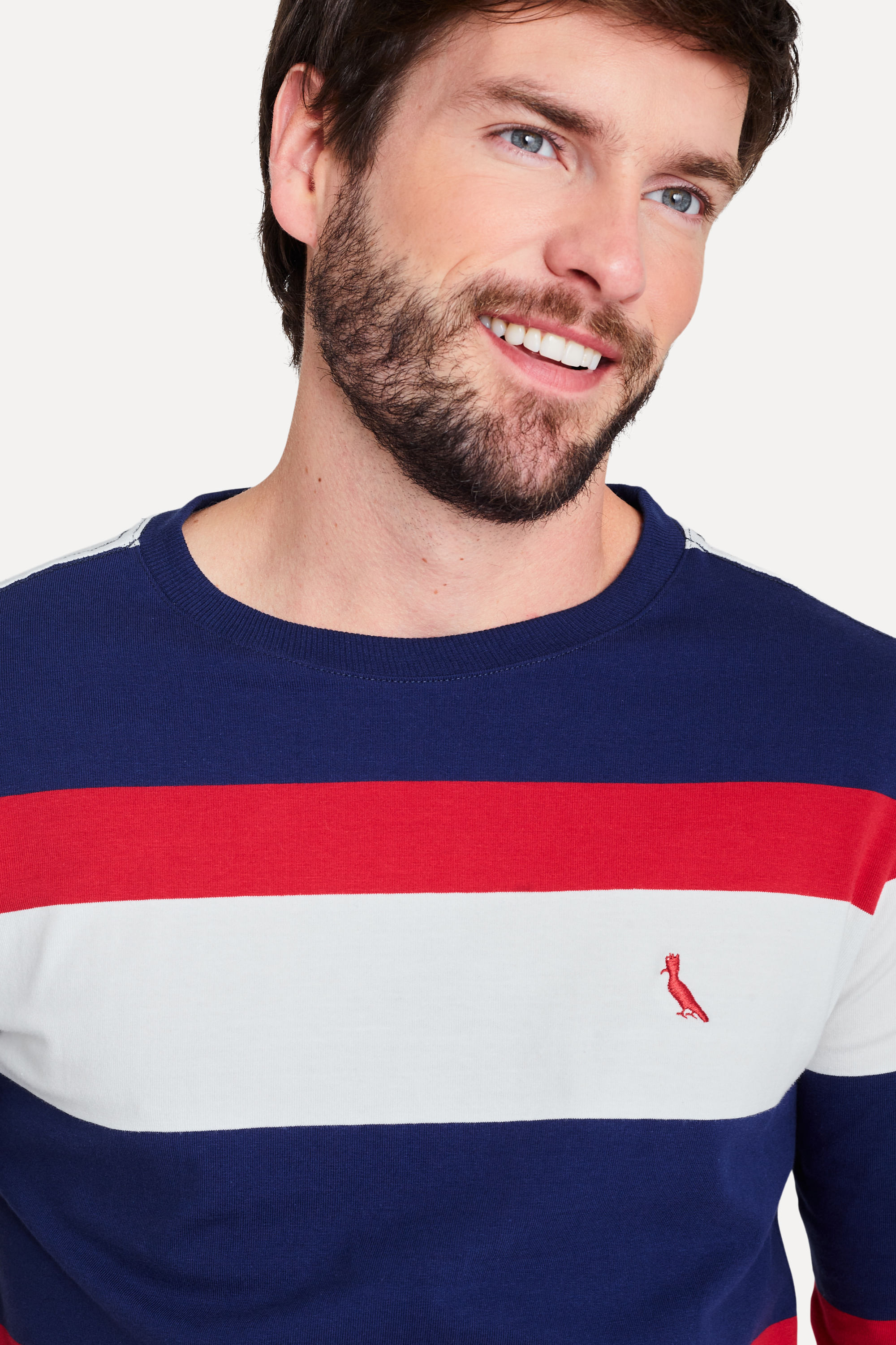O Suéter Listrado Cais da Reserva é perfeito para quem busca estilo e conforto em uma única peça. Com uma modelagem moderna e despojada, ele se adapta perfeitamente ao corpo, valorizando a silhueta masculina. O tecido destaque garante durabilidade e maciez, proporcionando um toque suave na pele. As listras dão um toque de personalidade ao visual, tornando-o ideal para compor looks casuais e descontraídos. Combine-o com uma calça jeans e um tênis para um visual descolado e cheio de atitude. Seja único, seja Reserva.O modelo tem 1,84 de altura, 99 de tórax e veste 42. Comprando esta peça, você viabiliza cinco pratos de comida através do nosso Programa 1P5P. Produto produzido eticamente no Brasil.