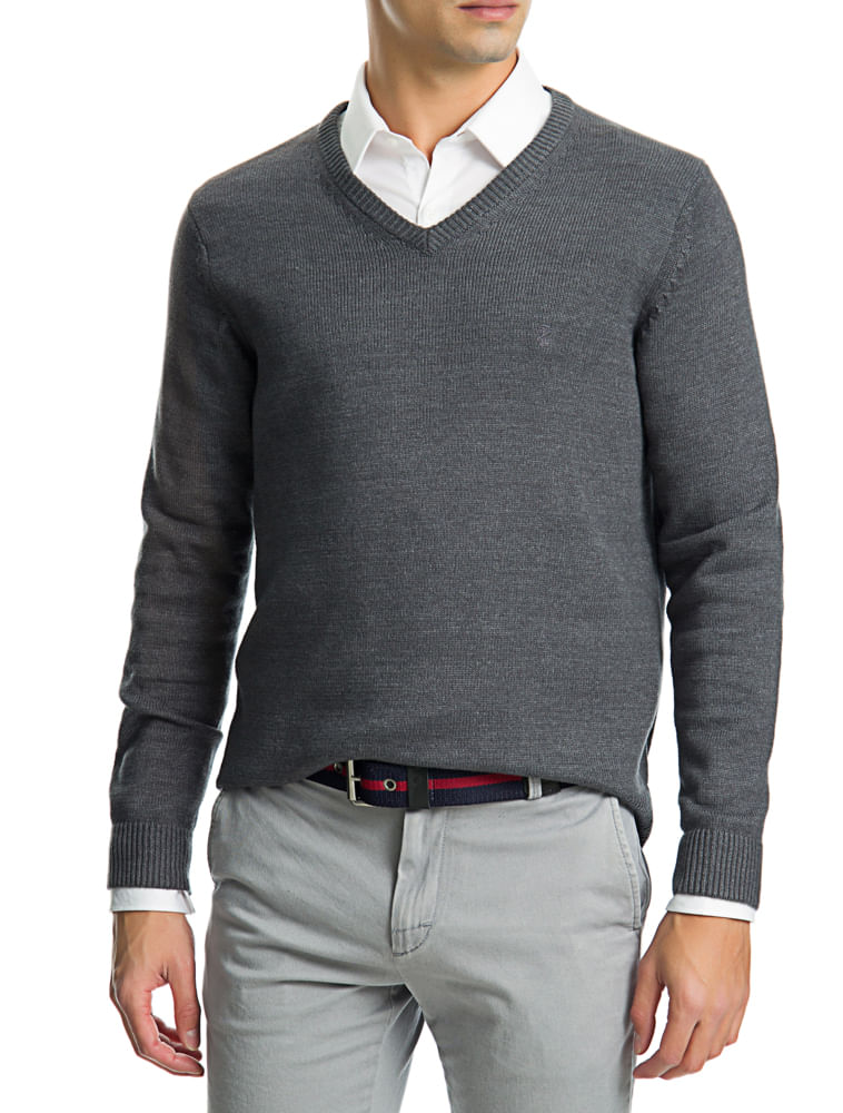 O Sueter Básico Em Tricot Cinza Grafite Da Izod Tem Decote V E É Uma Ótima Opção Para Dias Mais Frios. Pode Ser Usado Sobre Camisa , T-Shirt Ou Polo. Pode Ser E Usado No Trabalho E Nos Finais De Semana .Tem Algodão Em Sua Composição E Não É Pesado.