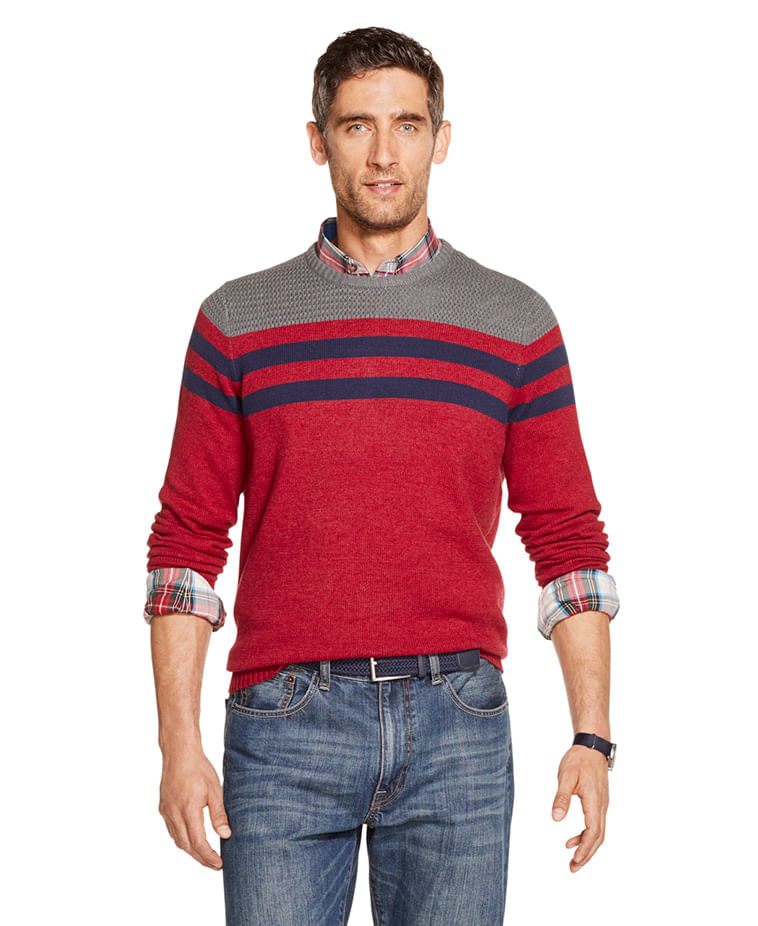 O suéter em tricot da Izod tem 2 faixas listradas horizontais no peito Em bordô , grafite e detalhes em azul marinho . Com decote redondo é uma opção moderna para dias mais frios e pode ser coordenada com uma calça chino, ou uma calça jeans. Tem algodão em sua composição , fácil de lavar e secar e muito confortável.