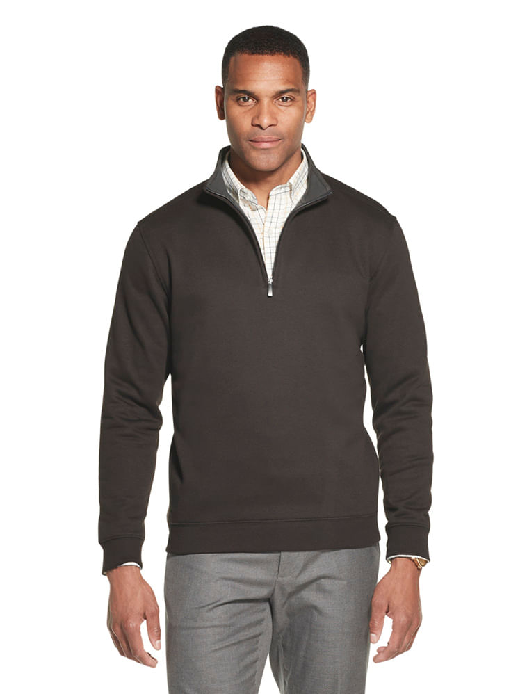 O suéter básico meio zíper preto da VAN HEUSEN em modelagem regular e é uma ótima opção para dias mais frios. Tem contraste interno na gola e pode ser usado sobre camisa ou t-shirt . Pode ser e usado no trabalho e nos finais de semana . Tem algodão e misturado ao poliéster tem um stretch natural que permite movimentos e conforto.