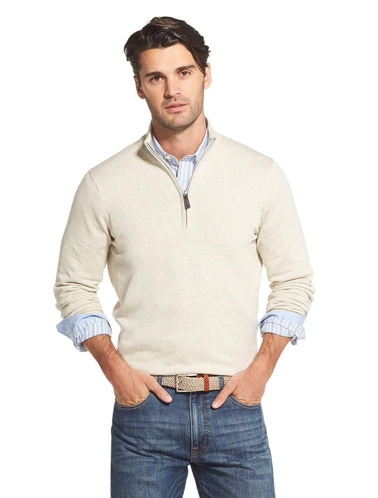 O suéter básico meio zíper em tricot areia da IZOD e é uma ótima opção para dias mais frios. Pode ser usado sobre camisa ou t-shirt . Pode ser e usado no trabalho e nos finais de semana .Em 100% algodão é adequado ao inverno brasileiro.