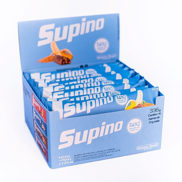 Informações técnicas do produto:<br> A Supino Zero Banana, Linhaça e Fibras, da Banana Brasil, é uma barra de frutas e linhaça à base de banana passa com cobertura de chocolate ao leite. Prática e saudável pode ser carregada facilmente na bolsa, mochila, carro ou academia. Ideal para ser consumido a qualquer horário do dia ou naqueles momentos em que bate aquela vontade de comer um doce.<br> <br> Recomendação de uso:<br> Pode ser consumido a qualquer momento do dia, é só abrir e aproveitar!<br> <br> Por que escolher esse produto?<br> 100% recheio de fruta<br> Sem glúten<br> Sem corantes e conservantes<br> Zero adição de açúcar<br> Açúcar da composição é o da própria fruta<br> Sobre a marca:<br> A Banana Brasil, no mercado desde 1985, foi pioneira no segmento de barras de frutas e hoje conta com um vasto portfólio de produtos com ingredientes selecionados. Está sempre atenta ás tendências mundiais de comportamento e saudabilidade, garantindo sempre que os melhores produtos cheguem aos consumidores, unindo saúde e praticidade.