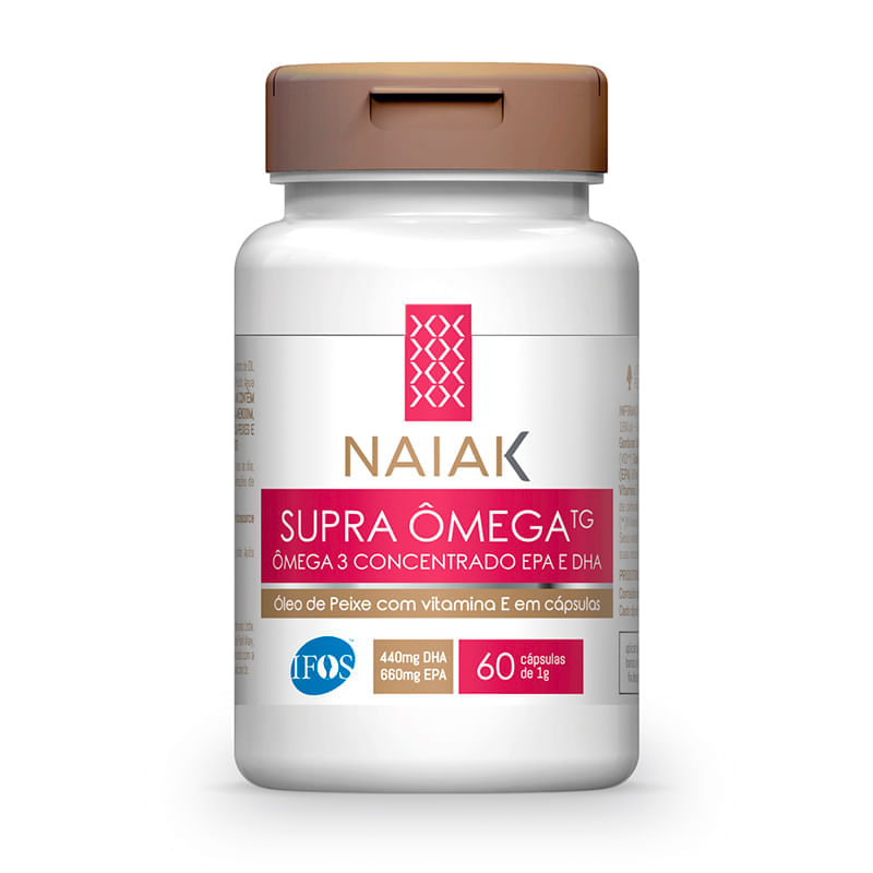 <p>O <strong>Supra Ômega 3TG Naiak 80g</strong>, possui 60% de EPA e 40% de DHA, esta proporção está disponível na mesma forma em que é encontrada na natureza, ou seja, de triglicerídeos (TG), o que favorece sua absorção pelo organismo e promove maior conforto gástrico.</p> <p>O Ômega 3 TG da Naiak conta com o selo MEG-que certifica a pureza e o fornecimento sustentável do derivado do óleo de peixe.</p> <p>Os óleos MEG-3 cumprem os regulamentos e diretrizes mundiais para contaminantes oferecendo ômega - 3 EPA e DHA seguros e de alta qualidade, sendo refinados para reduzir os níveis de contaminantes ambientais encontrados nos peixes. Além disso, são óleos selecionados e concentrados para obter a potência máxima de ômega-3 EPA e DHA.</p> Sobre os ingredientes: <p>Óleo de peixe TG MEG-3 (ômega 3) e antioxidante: Vitamina E (DL - alfa tocoferol INS 307c). Cápsula: Gelificante: Gelatina INS 428. Veículo: Água Purificada e Umectante: Glicerina INS 422. Não contém Glúten.</p> Sugestão de consumo: <p>Ingerir 1(uma) cápsula ao dia.</p> Motivos para escolher o produto: <ul> <li> <p>Alta concentração de EPA por cápsula</p> </li> <li> <p>Melhor absorção pelo organismo</p> </li> <li> <p>Maior conforto gástrico</p> </li> <li> <p>Livres de metais pesados</p> </li> <li> <p>Óleo proveniente de peixes de águas frias e profundas</p> </li> </ul> Sobre a marca: <p>A <strong>Naiak</strong> é uma empresa farmacêutica, de origem brasileira, que oferece uma linha completa de produtos nutracêuticos e alimentos funcionais voltados para a beleza e o bem-estar. Buscam cuidar da saúde de dentro para fora. Extraem seus ativos da natureza que em conjunto com a sua alta tecnologia oferecem produtos os quais contribuem para a vitalidade, qualidade de vida e autoestima.</p>