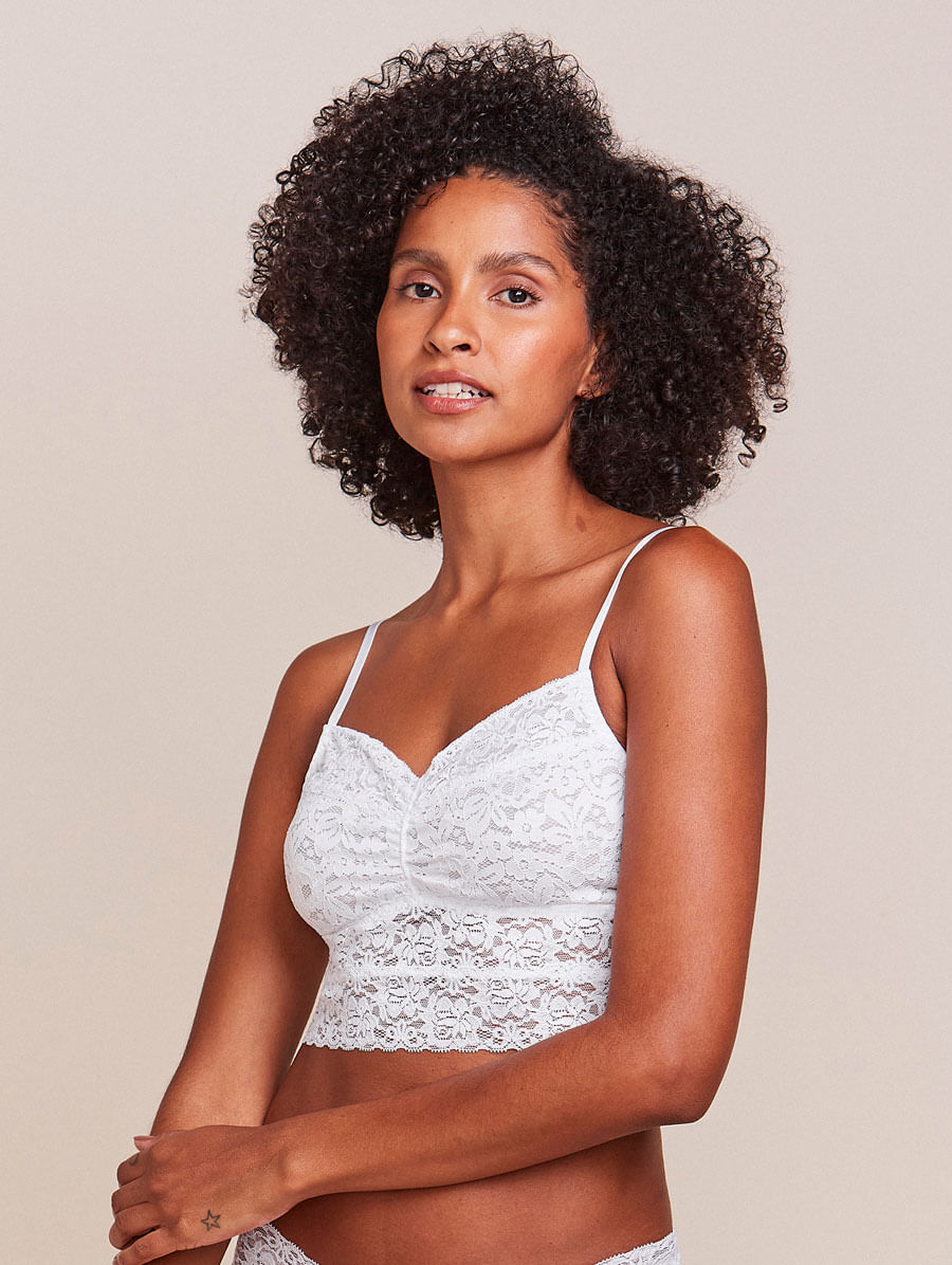 Sutiã Top Alongado com Bojo Removível Em Renda - Branco - P - 0L128730-BRC-P