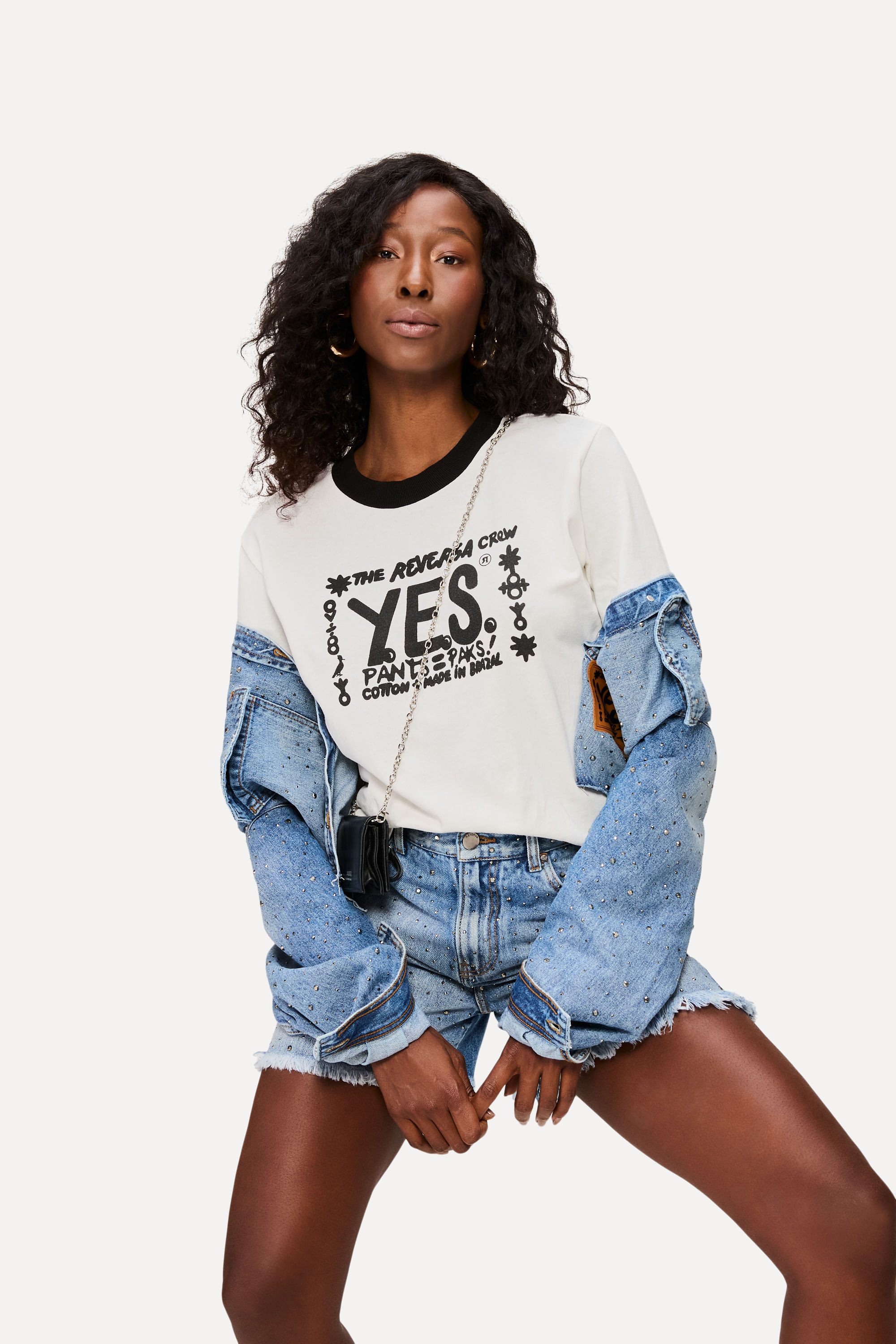 Mostre toda sua brasilidade com a T-Shirt Malha Yes Brazil! Feita em algodão de alta qualidade, proporciona muito conforto. Possui manga curta, gola redonda e ribana, estampa exclusiva e etiqueta de assinatura da collab Reversa + Yes Brazil. Combine com calças, shorts ou saias, tênis ou sandálias. A modelo tem 1,78 de altura, 82 de busto e veste 36. Comprando esta peça, você viabiliza cinco pratos de comida através do nosso Programa 1P5P. Camiseta produzida eticamente no Brasil.