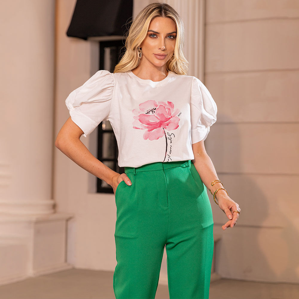 A T-shirt de manga bufante Seja Como Flor é uma peça que combina o conforto casual de uma camiseta com o toque sofisticado das mangas bufantes, oferecendo uma abordagem única e estilosa para o vestuário feminino; A característica mais marcante desta T-shirt é, sem dúvida, suas mangas bufantes; Essas mangas volumosas acrescentam uma dose de drama e romance ao visual, destacando os ombros e criando uma silhueta elegante e feminina; A estampa Seja Como Flor adiciona um toque de significado à T-shirt; Ela pode representar a ideia de florescer e crescer, de aceitar a própria beleza e individualidade; A T-shirt de manga bufante Seja Como Flor é uma tendência que combina moda e significado, oferecendo estilo e conforto em uma única peça.<br>.<br>Produto: T-shirt Manga Bufante Seja Como Flor Rosa<br>Categoria: Blusa<br>Cor: Rosa <br>Tecido: Algodão<br>Composição: 100% algodão<br>Peso : 300g<br>Gênero: Feminino<br>Marca: Vértice<br><br>Medidas da Modelo<br>Altura: 1,70 cm<br>Busto: 89 cm<br>Cintura: 65 cm<br>Quadril: 94 c<br>A MODELO VESTE O TAMANHO P<br>.<br>Medidas.<br>P - Busto até 90 cm l Cintura até 71 cm l Quadril até 99 Cm.<br>M - Busto até 96 cm l Cintura até 77 cm l Quadril até 102 cm.<br>G - Busto até 102 cm l Cintura 83 cm l Quadril 111 cm.<br>GG - Busto 108 cm l Cintura até 89 cm l Quadril até 117 cm.<br>EGG - Busto até 114 cm l Cintura até 95 cm l Quadril até 123 cm.
