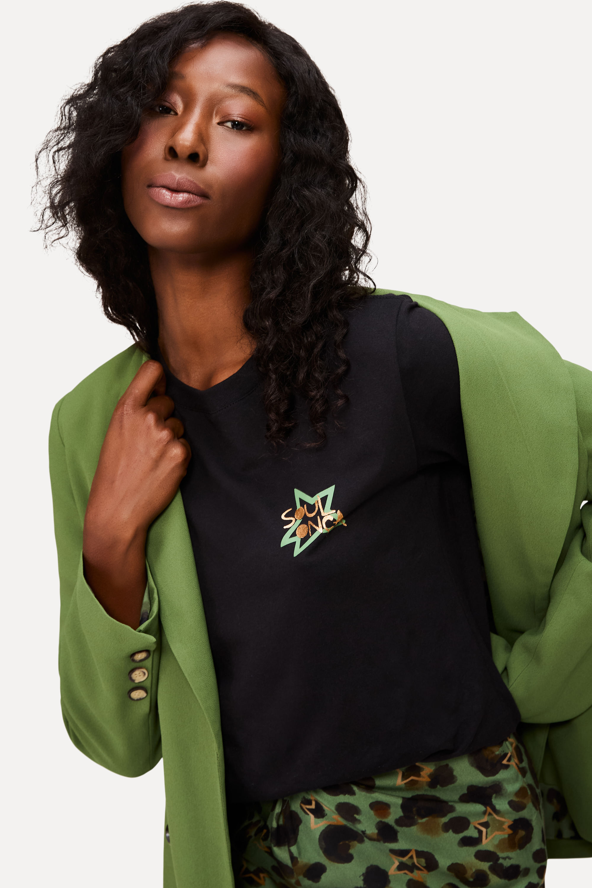 Para um dia a dia com muito mais estilo, conheça a T-Shirt Silk Soul Onça Foil, da collab Reversa + Carol Dieckmann! Feita em algodão de alta qualidade, proporciona muito conforto. Possui manga curta, gola redonda em ribana e estampa exclusiva. A modelo tem 1,76 de altura, 84 de busto e veste 36. Comprando esta peça, você viabiliza cinco pratos de comida através do nosso Programa 1P5P. T-shirt produzida eticamente no Brasil.