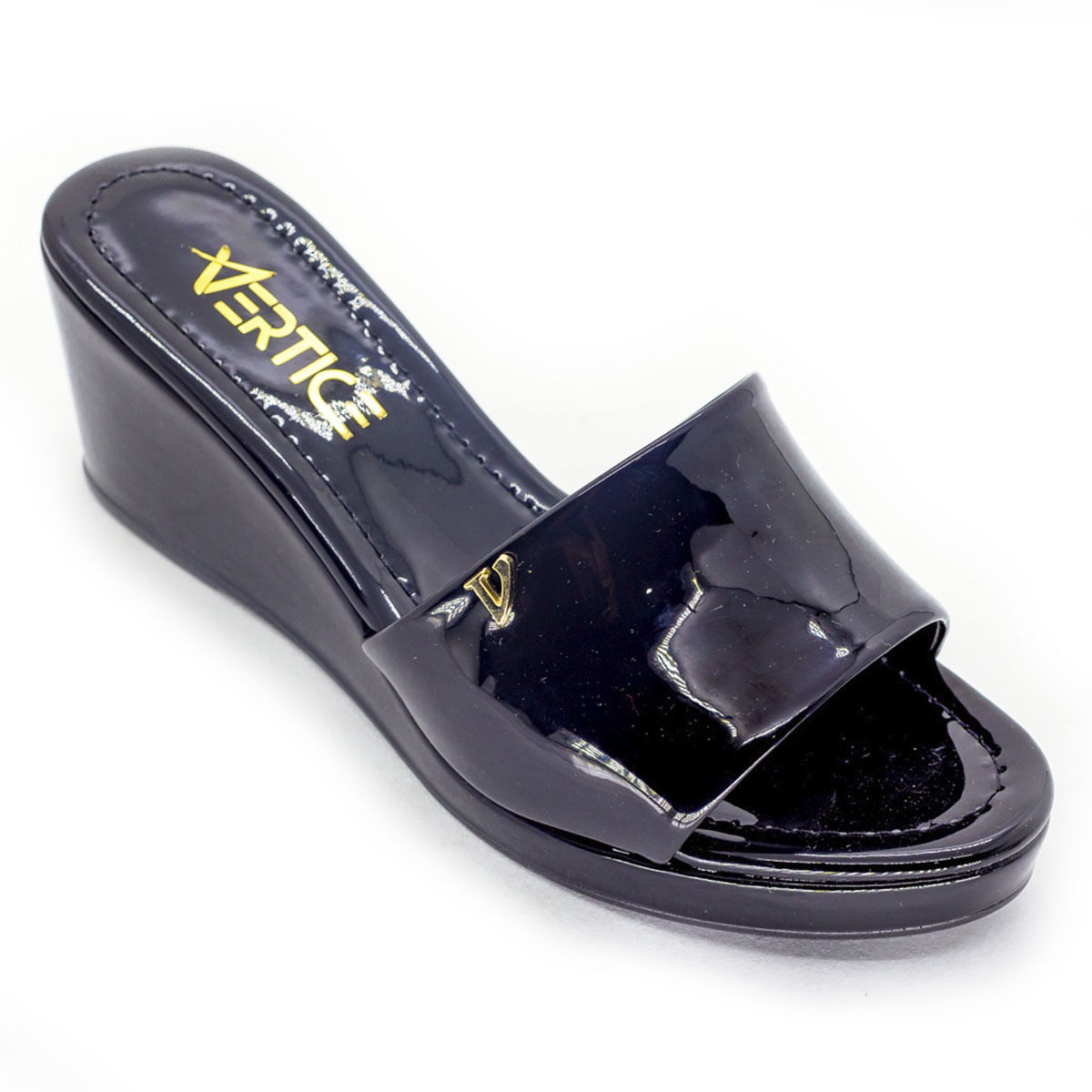 Práticos e versáteis, os tamancos voltaram como tendência, sendo o grande aliado da mulher moderna. Suas principais características são não possuir tiras no tornozelo e deixar os calcanhares à mostra. Escolha o seu Vértice... Categoria: Tamancos e Mules. Tipo de Salto: Plataforma. Altura do Salto: 6 cm. Tipo de Bico: Redondo. Material Externo: Sintético. Peso: 350 g. Cor: Preto. Gênero: Feminino. Marca: Vértice