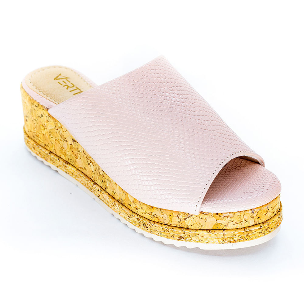 Tamanco Flatform Feminino Snake E Cortiça - Rosé