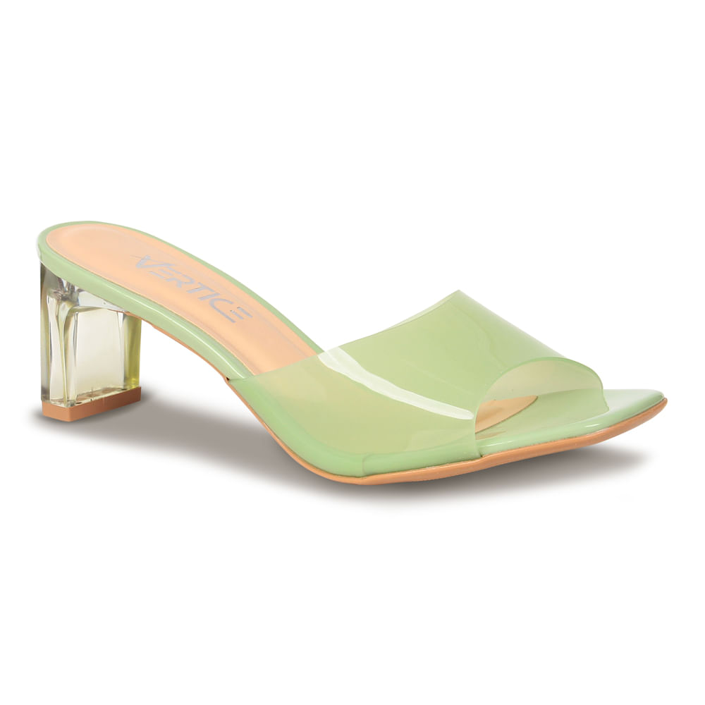 Tamanco Salto Médio Acrílico Vinil Chá Verde