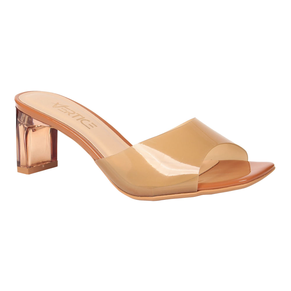 Tamanco Salto Médio Acrílico Vinil Caramelo