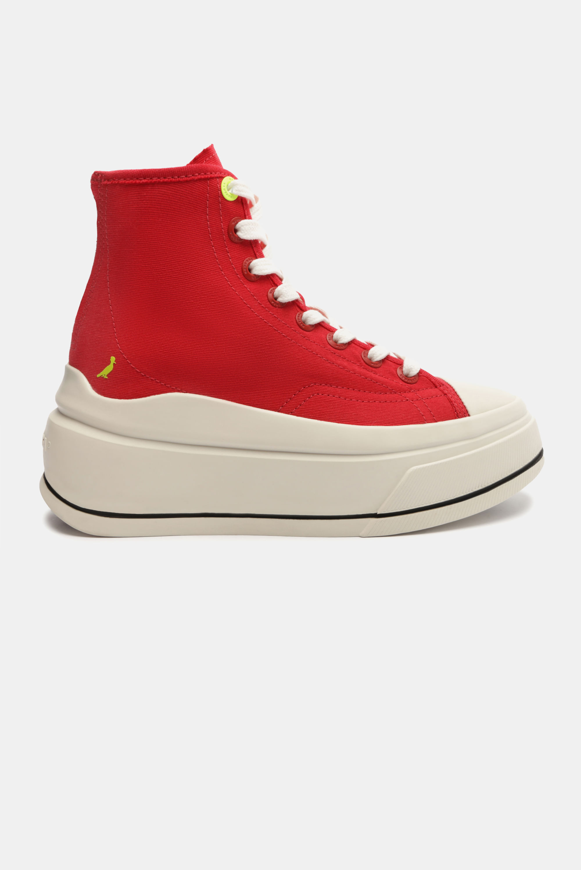 Conheça o Tênis Fem Monolita High, seu novo queridinho. Com cabedal no estilo botinha cano médio, é feito de lona de algodão sustentável. Possui ilhós de metal personalizado, palmilha de Eva super macia e sola plataforma de borracha de 7cm, o grande diferencial desse produto. Por mais que a sola seja bem robusta, seu interno de enchimento em PU com rouba peso e rolagem anatômica proporciona conforto ao caminhar. Comprando esta peça, você viabiliza cinco pratos de comida através do nosso Programa 1P5P. Tênis produzido eticamente no Brasil.