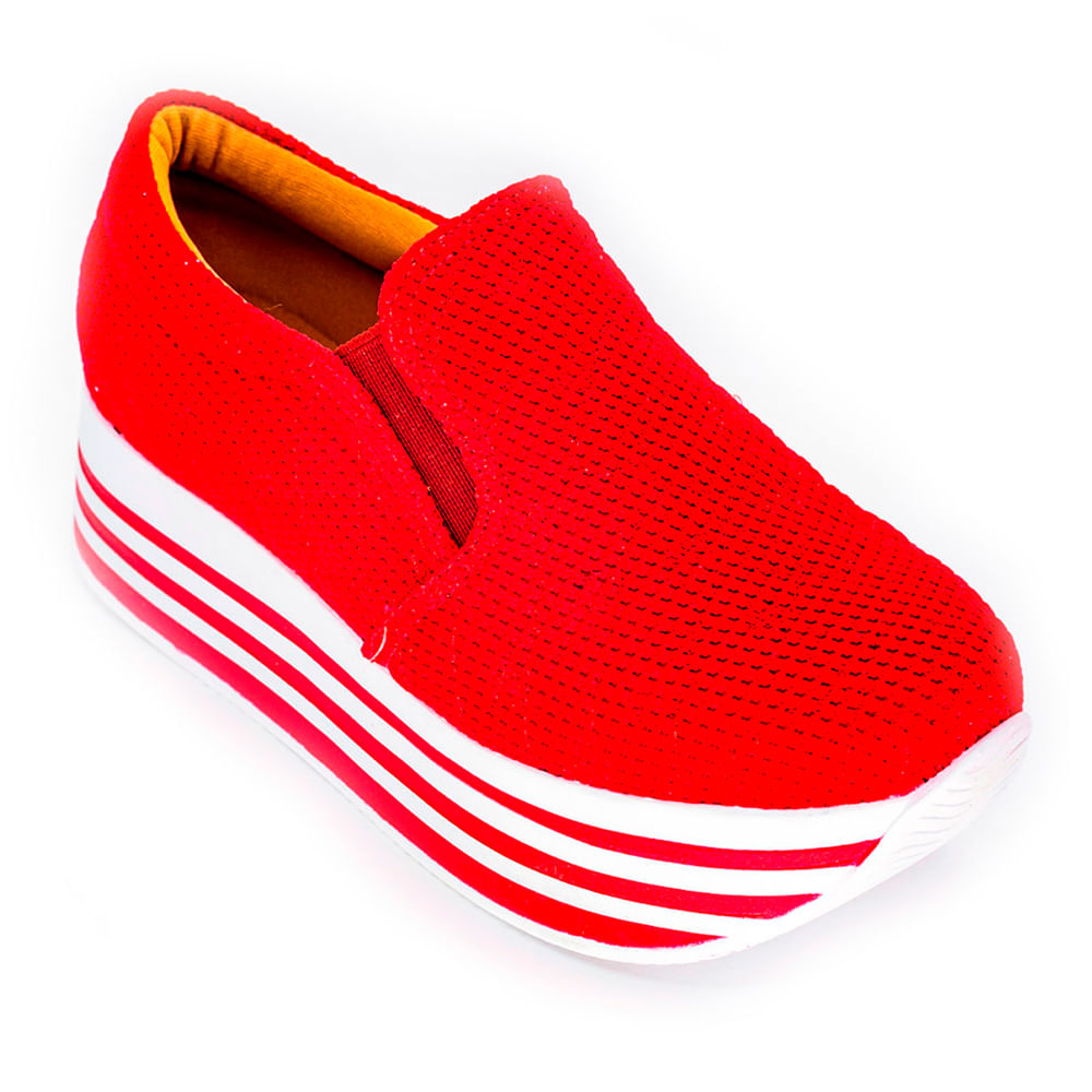Tênis Feminino Plataforma Flatform Com Listras - Vermelho