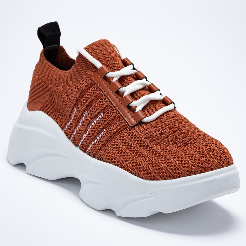 Tenis Feminino Sneaker Meia com Cadarço Marrom