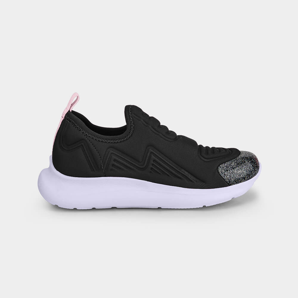 Tênis estilo esportivo para uso diário, combina com todas as ocasiões. É fácil de calçar, tem um ótimo ajuste ao pé, por ser confeccionado em elastano, com detalhes em frequência, gerando extremo conforto e muito estilo, com a biqueira em glitter. O solado de EVA proporciona leveza e flexibilidade. Possui palmilha Fisioflex que é fofinha e igual a andar descalço.