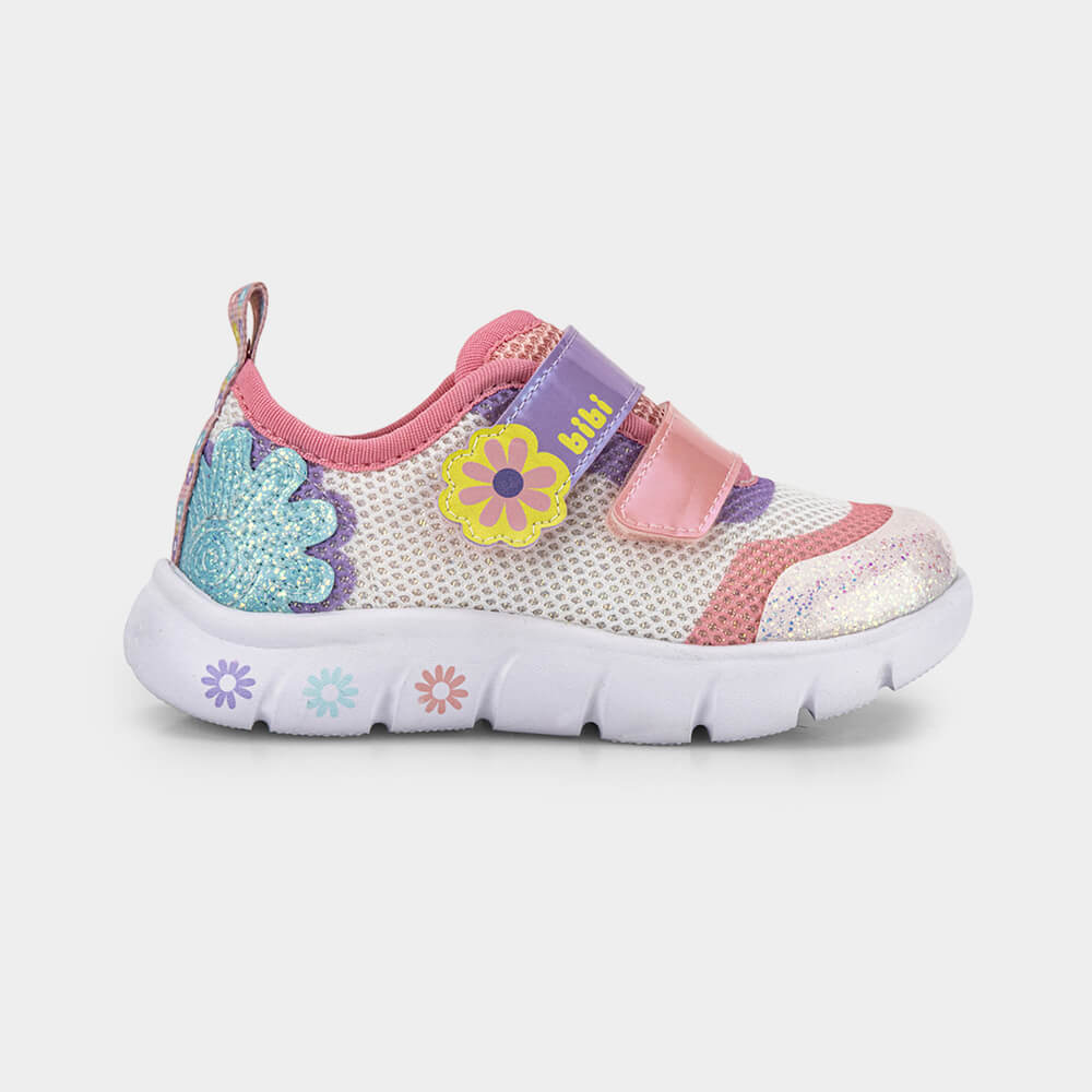 Descubra o tênis infantil feminino ideal para as brincadeiras diárias e atividades escolares! <br> Com um design de flores atual e moderno, este modelo é fácil de calçar e oferece um excelente ajuste aos pés. Confeccionado em tecido de fácil limpeza, o tênis conta com uma tira para fechamento, proporcionando praticidade e segurança. <br> Perfeito para o uso diário e para ir à escola, seu solado de EVA incorpora a tecnologia **BPlus**, que garante maior tração e aderência ao piso, além de proporcionar um toque macio e emborrachado para mais conforto. A palmilha **Fisioflex** é extremamente macia, simulando a sensação de andar descalço, oferecendo um bem-estar incomparável para os pequenos. <br> Combinando funcionalidade e conforto, este tênis é a escolha ideal para crianças que precisam de um calçado resistente e confortável para o dia a dia. <br> Escolha o melhor tênis infantil, que une estilo, praticidade e conforto, perfeito para todas as aventuras diárias.
