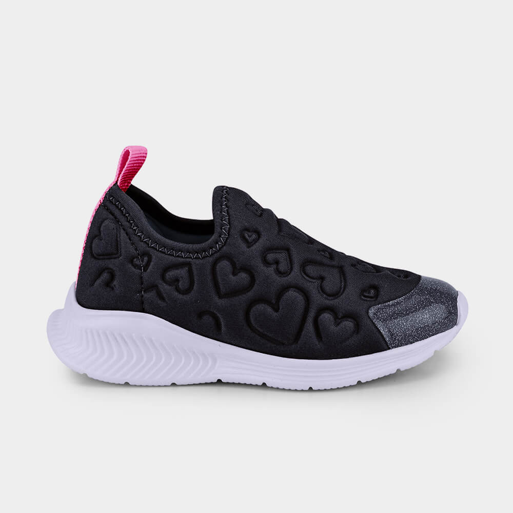 Tênis Infantil Bibi Fly Baby II Preto e Rosa de Coração