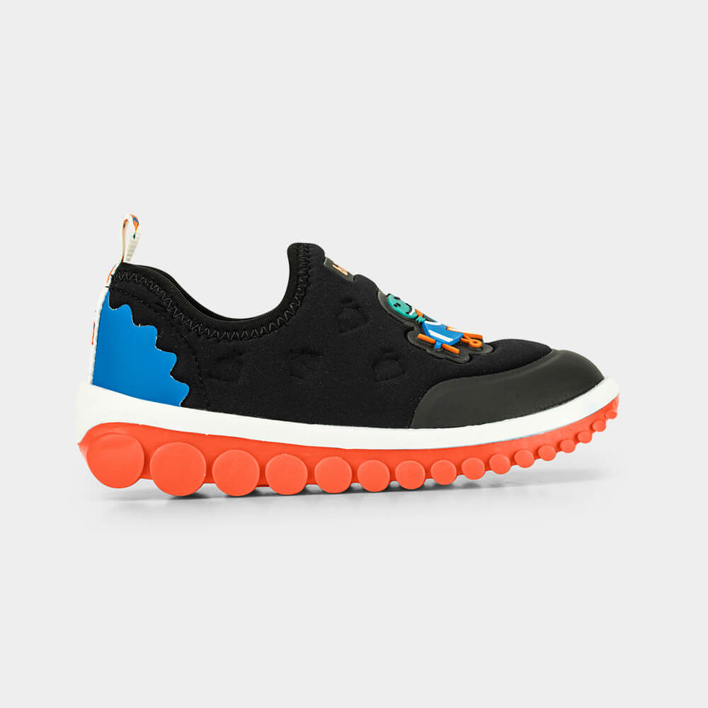 Descubra o tênis infantil masculino perfeito para as brincadeiras do dia a dia! <br> Nosso modelo na cor preta, com aplicação de dino aviador, apresenta um design moderno, ideal para acompanhar as crianças em todas as suas aventuras. <br> Confeccionado em elastano, um material respirável e de fácil limpeza, o tênis oferece um ajuste excelente ao pé, garantindo conforto durante todo o uso. <br> O solado inovador que segue os movimentos do pé, oferecendo um design ainda mais atual e criativo. Possui a palmilha **Fisioflex,** que é macia e proporciona a sensação de andar descalço, assegurando conforto extremo para os pequenos. <br> Este tênis é a escolha ideal para pais que buscam qualidade, conforto e um visual moderno para seus pequenos.
