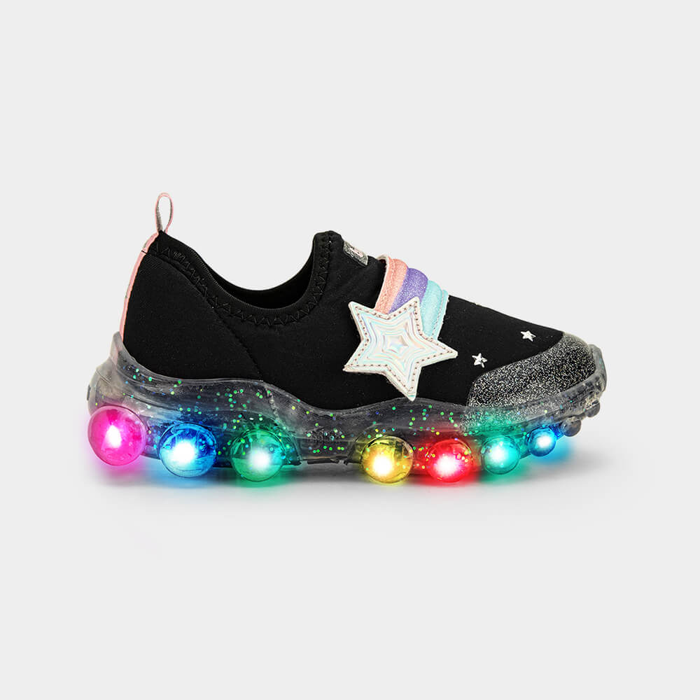 O tênis infantil de luz feminino da linha Bibi Roller Celebration 2.0 é um calçado versátil, projetado para combinar perfeitamente com todas as ocasiões! <br> Confeccionado em elastano, um material transpirante e de fácil limpeza, é ideal para uso diário, proporcionando um ajuste excelente aos pezinhos. <br> Destacando-se pelo seu design moderno, seu solado vem equipado com **luzinhas** que piscam ao caminhar, oferecendo não apenas conforto, mas também diversão para as meninas durante as atividades do dia a dia. <br> Além disso, possui a palmilha **Fisioflex**, reconhecida pelo seu conforto, proporcionando uma sensação similar a andar descalço. <br> Este tênis é a escolha ideal para pais que buscam qualidade, conforto e um visual moderno para suas pequenas, o modelo perfeito para as aventuras diárias.