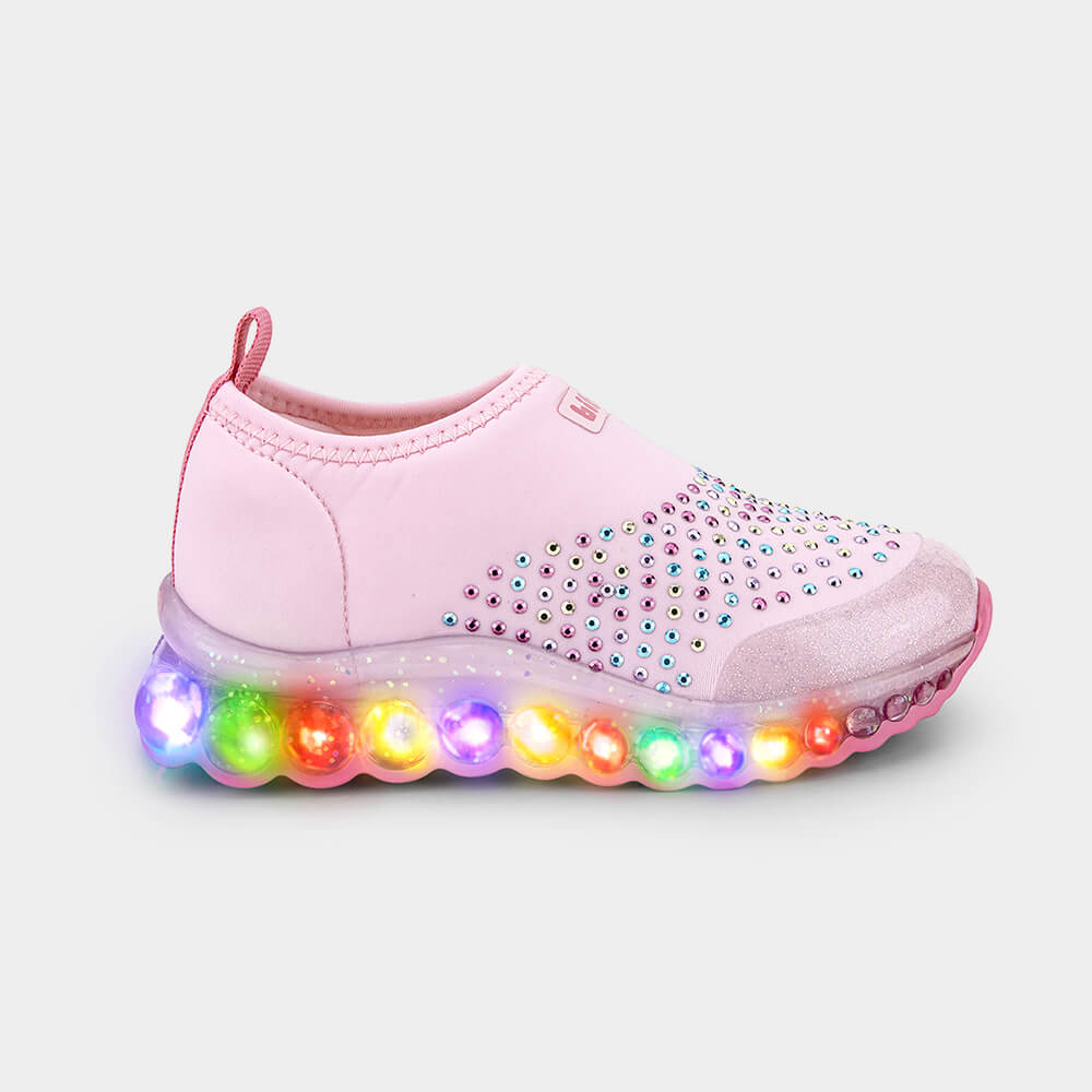 Tênis Infantil de Luz Bibi Roller Celebration Rosa com Pedras