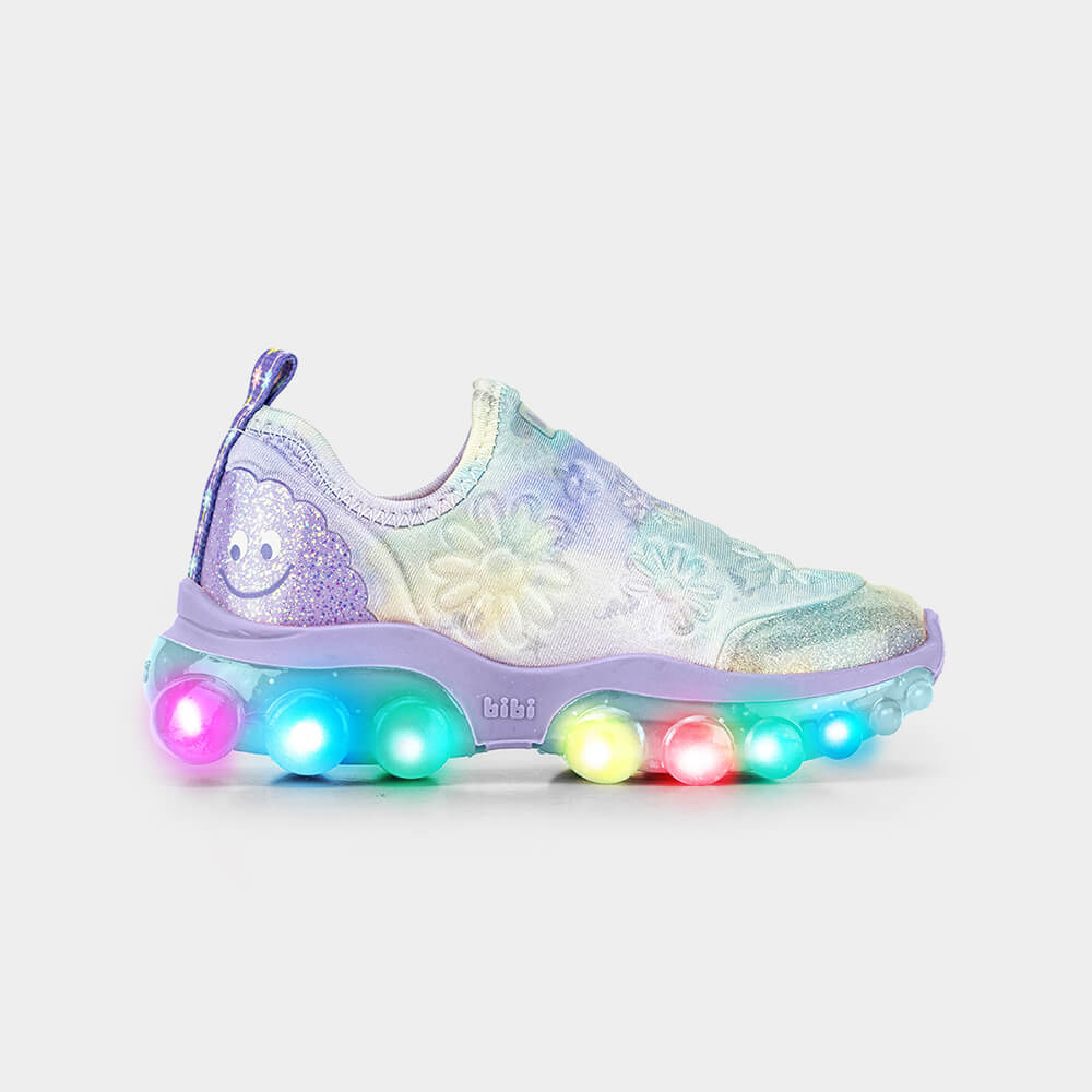 O tênis infantil de luz feminino da linha Bibi Roller Celebration 2.0 é um calçado versátil, projetado para combinar perfeitamente com todas as ocasiões! <br> Confeccionado em elastano, um material transpirante e de fácil limpeza, é ideal para uso diário, proporcionando um ajuste excelente aos pezinhos. <br> Destacando-se pelo seu design moderno, seu solado vem equipado com **luzinhas** que piscam ao caminhar, oferecendo não apenas conforto, mas também diversão para as meninas durante as atividades do dia a dia. <br> Além disso, possui a palmilha **Fisioflex**, reconhecida pelo seu conforto, proporcionando uma sensação similar a andar descalço. <br> Este tênis é a escolha ideal para pais que buscam qualidade, conforto e um visual moderno para suas pequenas, o modelo perfeito para as aventuras diárias.