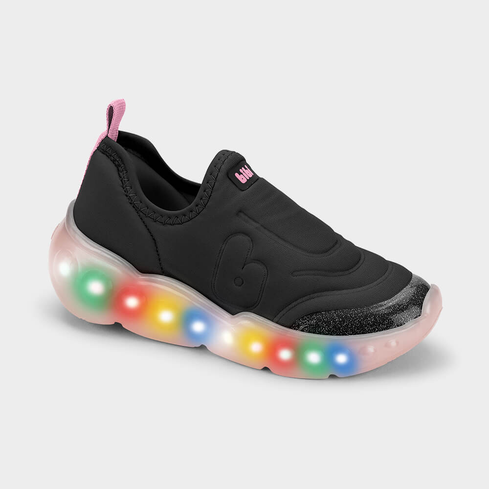 <p>O <strong>Roller Celebration 3.0</strong> da <strong>Bibi</strong> é o tênis infantil que transforma cada passo em pura diversão. Com cabedal em <strong>preto</strong>, toques de <strong>rosa</strong> e detalhe com <strong>brilho</strong> na biqueira, ele combina estilo urbano com um solado translúcido que acende com <strong>luzes de LED multicoloridas</strong>. Perfeito para passeios, escola e brincadeiras, é aquele visual “uau” que as crianças amam e os pais aprovam.</p> <p>Feito para acompanhar o ritmo dos pequenos, o modelo conta com a palmilha <strong>Fisioflex</strong>, que promove a sensação de andar descalço e estimula o movimento natural dos pezinhos. O design sem cadarço garante <strong>calce fácil</strong> e ajuste seguro, entregando autonomia para a criança e praticidade no dia a dia. Leve, flexível e livre de substâncias tóxicas, o Roller Celebration 3.0 é confortável do café da manhã ao “só mais cinco minutinhos” de brincadeira.</p> <p><strong>Por que as crianças piram:</strong></p> <li><strong>Luz:</strong> Solado com <strong>LEDs coloridos</strong> que acendem a cada passo e roubam a cena;</li> <li><strong>Palmilha Fisioflex:</strong> Maciez que reproduz a pisada descalça e favorece o desenvolvimento dos pezinhos;</li> <li><strong>Calce em 1-2-3:</strong> Estrutura elástica <strong>sem cadarço</strong> para vestir rápido e sair brincando;</li> <li><strong>Estilo que brilha:</strong> Cabedal preto com detalhes rosa e <strong>toque de glitter</strong> na ponta;</li> <li><strong>Conforto o dia todo:</strong> Construção <strong>leve</strong> e <strong>flexível</strong> , feita para acompanhar muitas aventuras;</li> <p>O <strong>Roller Celebration 3.0</strong> é a escolha certa para quem busca um <strong>tênis infantil com luzes</strong>, <strong>calce fácil</strong> e conforto de sobra — um show de estilo que acompanha a imaginação em qualquer brincadeira.</p>
