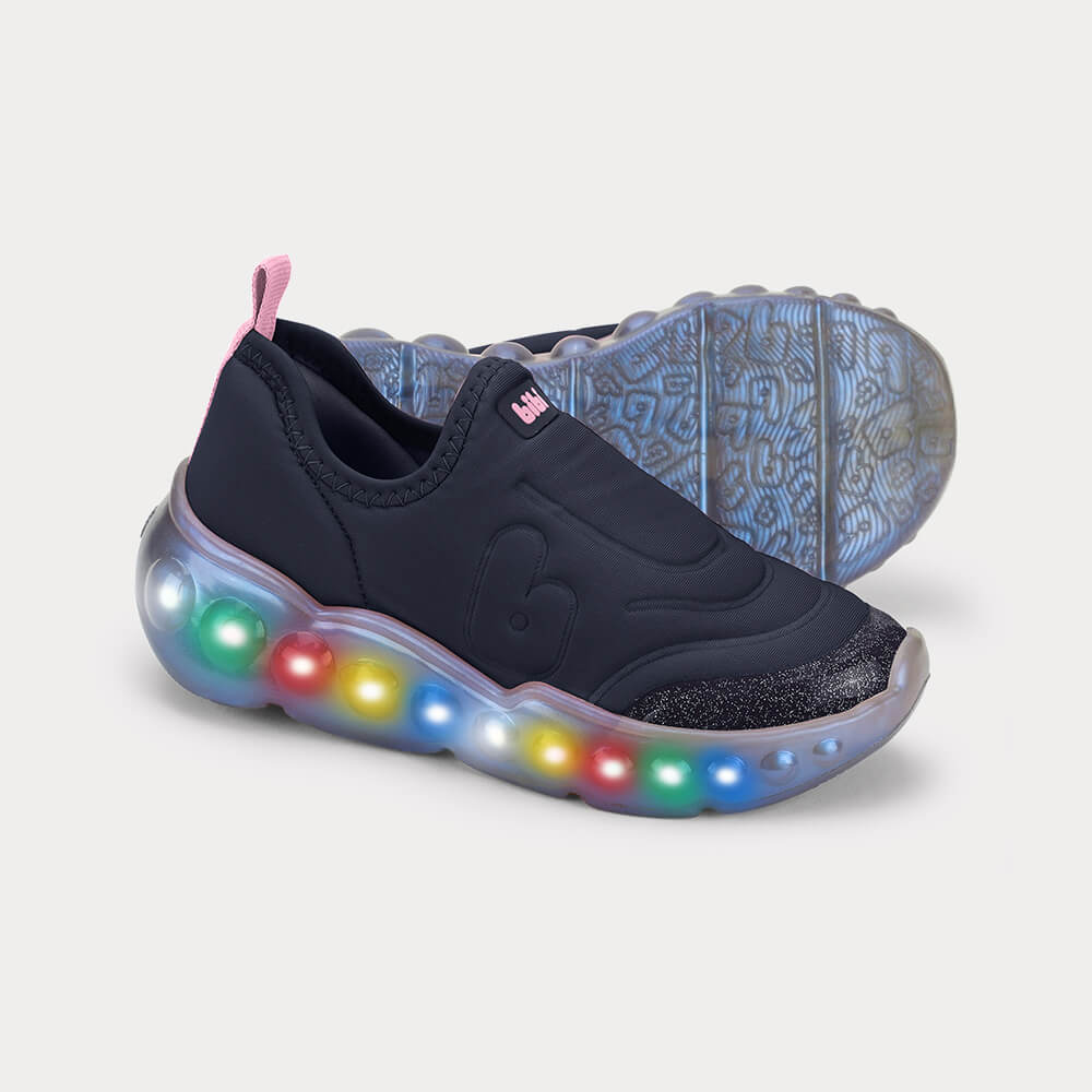 Apresentamos o lançamento do momento, o tênis infantil de luz feminino da linha Bibi Roller Celebration 3.0! <br> **Benefícios** <br> <li> Conforto: Confeccionado com materiais de alta qualidade e palmilha Fisioflex, este tênis garante conforto e durabilidade. </li> <li> Design: Na cor azul marinho com rosa, é confeccionado em elastano, fácil de calçar e se ajusta perfeitamente ao pé. </li> <li> Tecnologia: A palmilha Fisioflex promove a sensação de andar descalço e proporciona ainda mais conforto, estimulando a percepção sensorial e as terminações nervosas, o que contribui para o desenvolvimento natural e saudável das crianças. </li> **Diferencial:** <br> <li> Luzes: Possui luzes de LED que piscam a cada passo e tornam as brincadeiras mais divertidas. Com capacidade de duzentos mil ciclos, não há necessidade de carregamento. </li> Aposte neste tênis feminino para proporcionar estilo e alegria em todas as ocasiões!